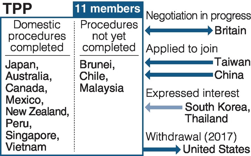 Negotiations over their memberships are expected to intensify as stances vary widely among the 11 TPP members, putting Japan, which chairs the trade pact, in a difficult position.