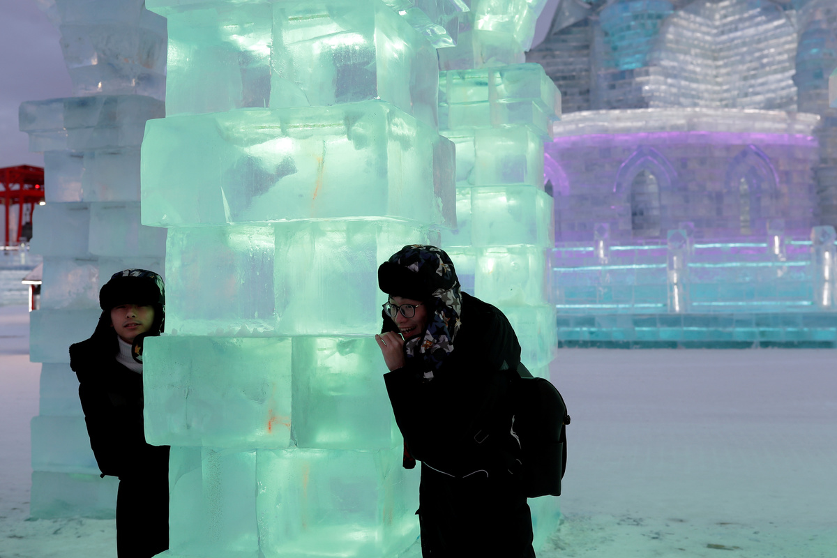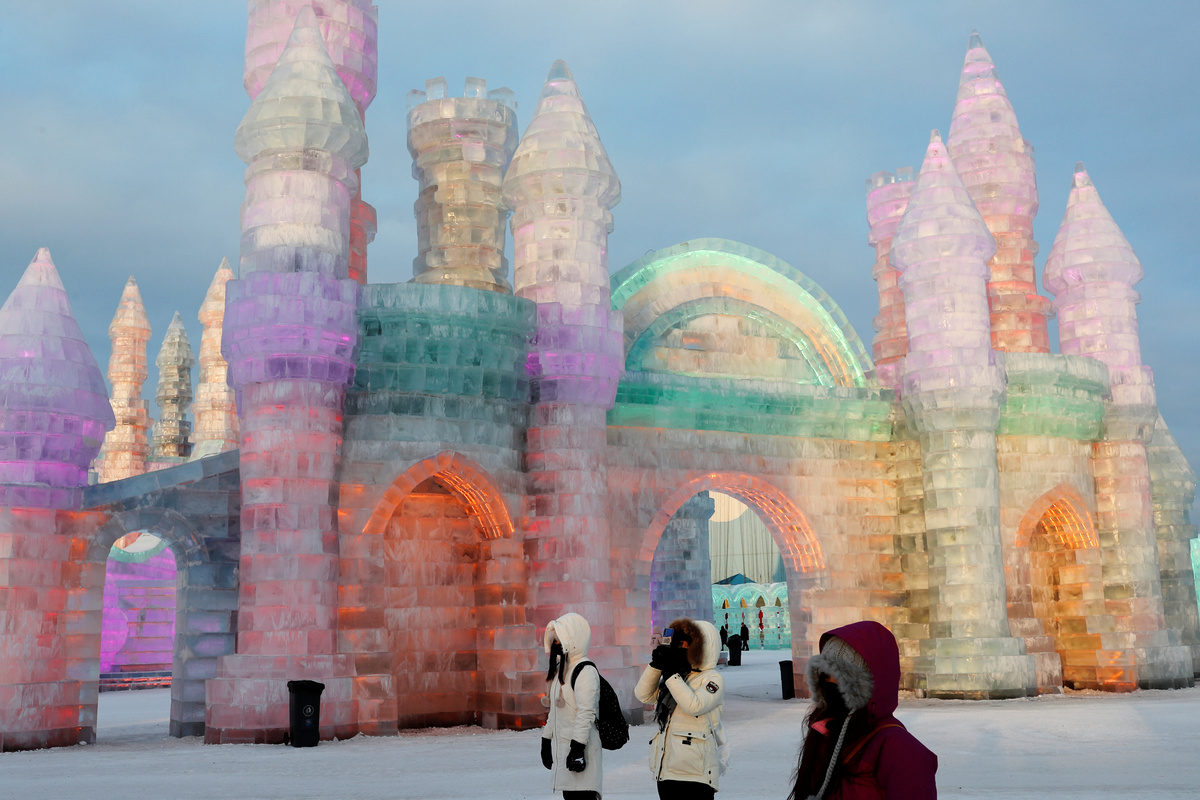 "The ice castles and sculptures made by workers are very impressive," said Lin Renlong, who was visiting with his girlfriend.