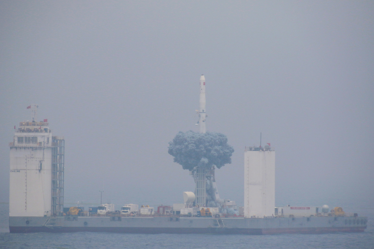 The Long March 11 rocket blasted off from a platform on a large semi-submersible barge in the Yellow Sea just after midday (0400 GMT), state media said.