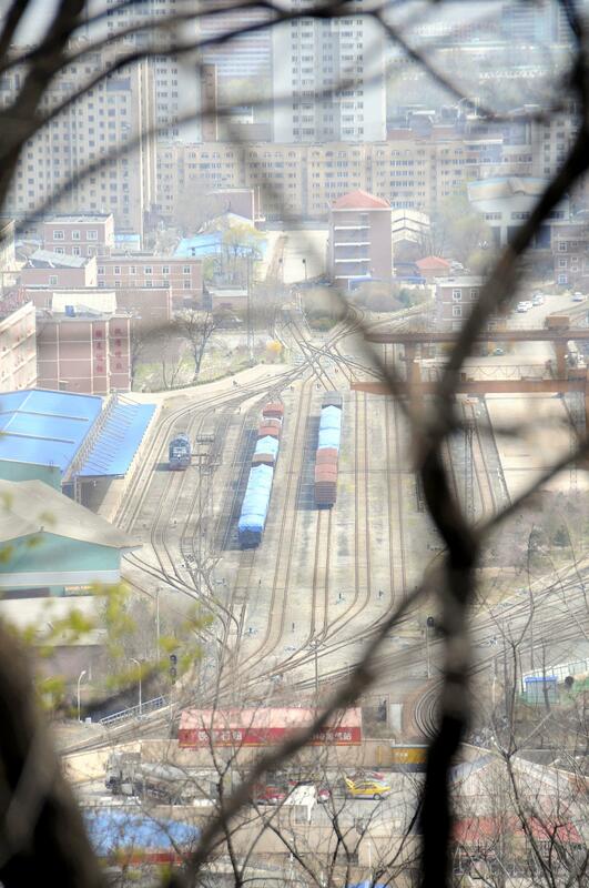 I visited China's northeastern border city of Dandong in Liaoning Province on April 15, and I saw cargo trains spotted at a station. They were believed to be bound for North Korea.