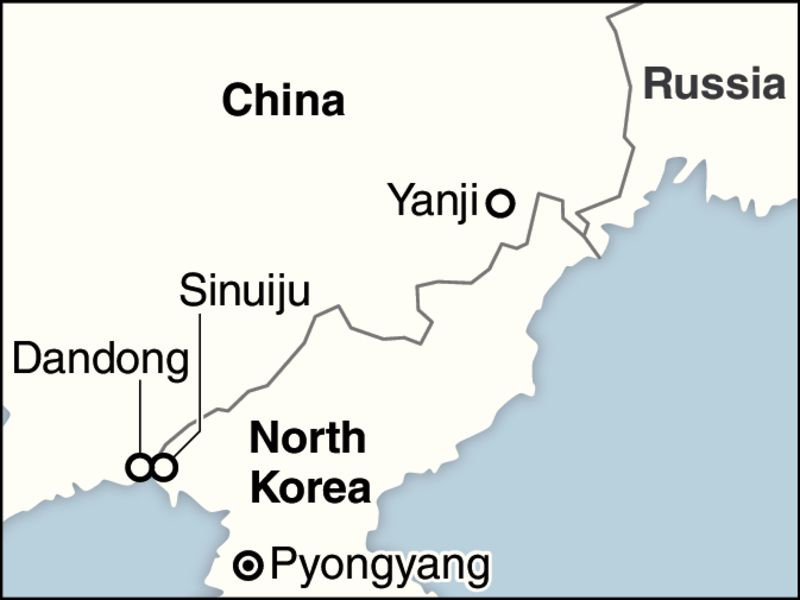 A 3-kilometer-long bridge that extends to Sinuiju in North Korea was built across the Yalu River, which runs along the border between the two countries. A riverside park in Dandong had newly installed binoculars for tourists.