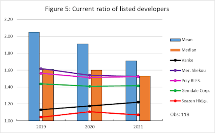 The industry has also seen a gradual fall in developers’ current ratios (their ability to repay short-term debts, see figure 5 below), which indicates lower overall liquidity and leaves the industry vulnerable to financial shocks.