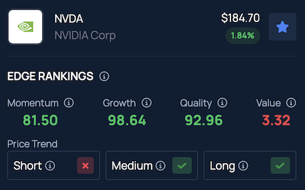 Nvidia places in the 98th percentile for Growth and the 92nd percentile for Quality in Benzinga’s Edge Stock Rankings, highlighting its standout performance relative to industry peers.