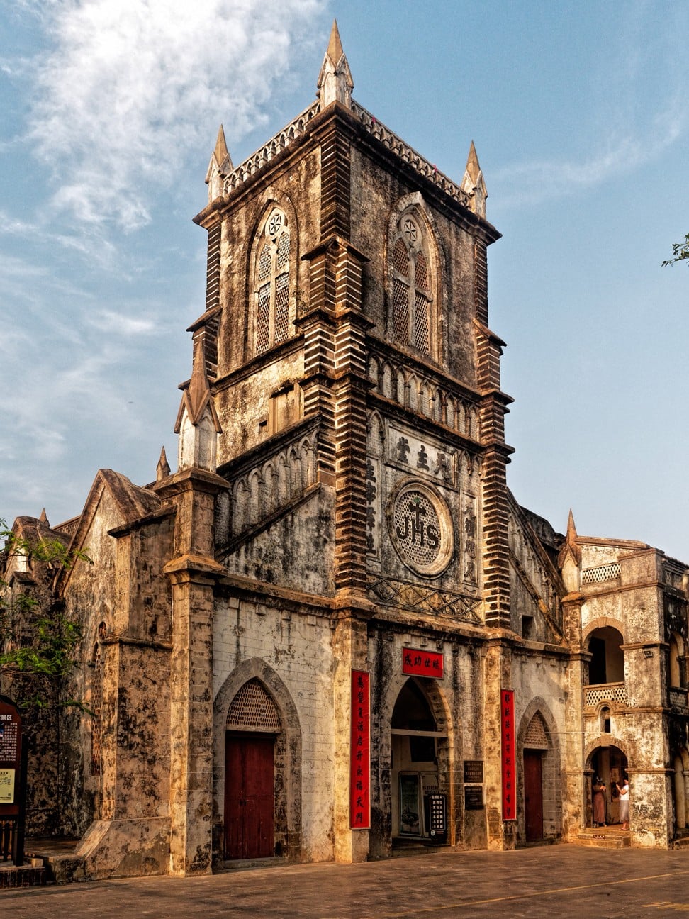 While the hamlets are unremarkable, with low houses, some built of bricks fashioned from volcanic rock, Weizhou does have two fine churches, built by French missionaries around the middle of the 19th century. The larger, and better known, of these is the Gothic-style Catholic cathedral. It's tiny for a cathedral, but has a quiet grandeur.
