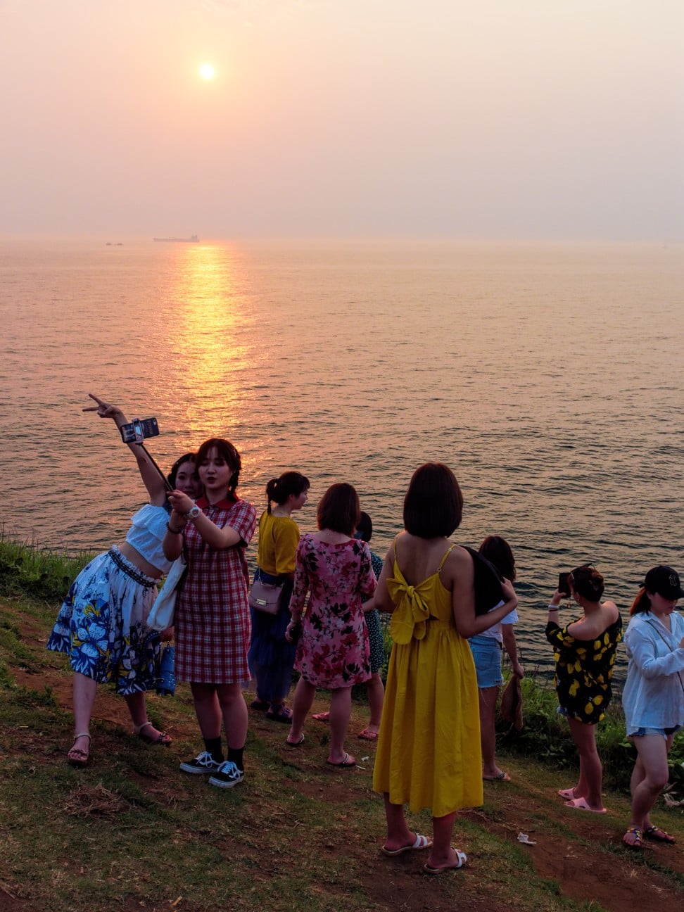 In late afternoons, a grassy headland in the northwest becomes a natural grandstand, attracting crowds who snap a multitude of photos as the sun sets over the sea.