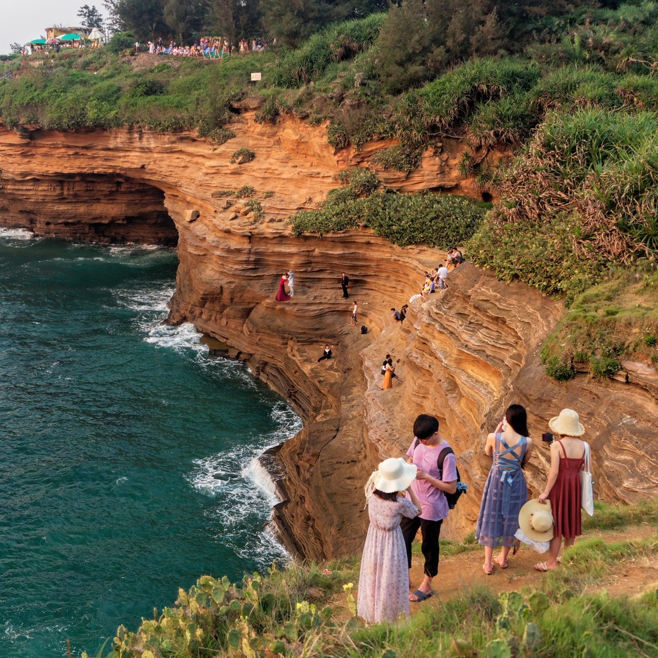 While the entire island is designated as a geopark, a visit to this southwestern tip is a must, as here the crater rim still looks raw and recently formed where it drops to clear waters, with the expanse of the South China Sea beyond. It's called Crocodile Hill, and falls within the boundaries of a park. There is an entrance at the top of the ridge, from where a flight of steps leads down to the shore.