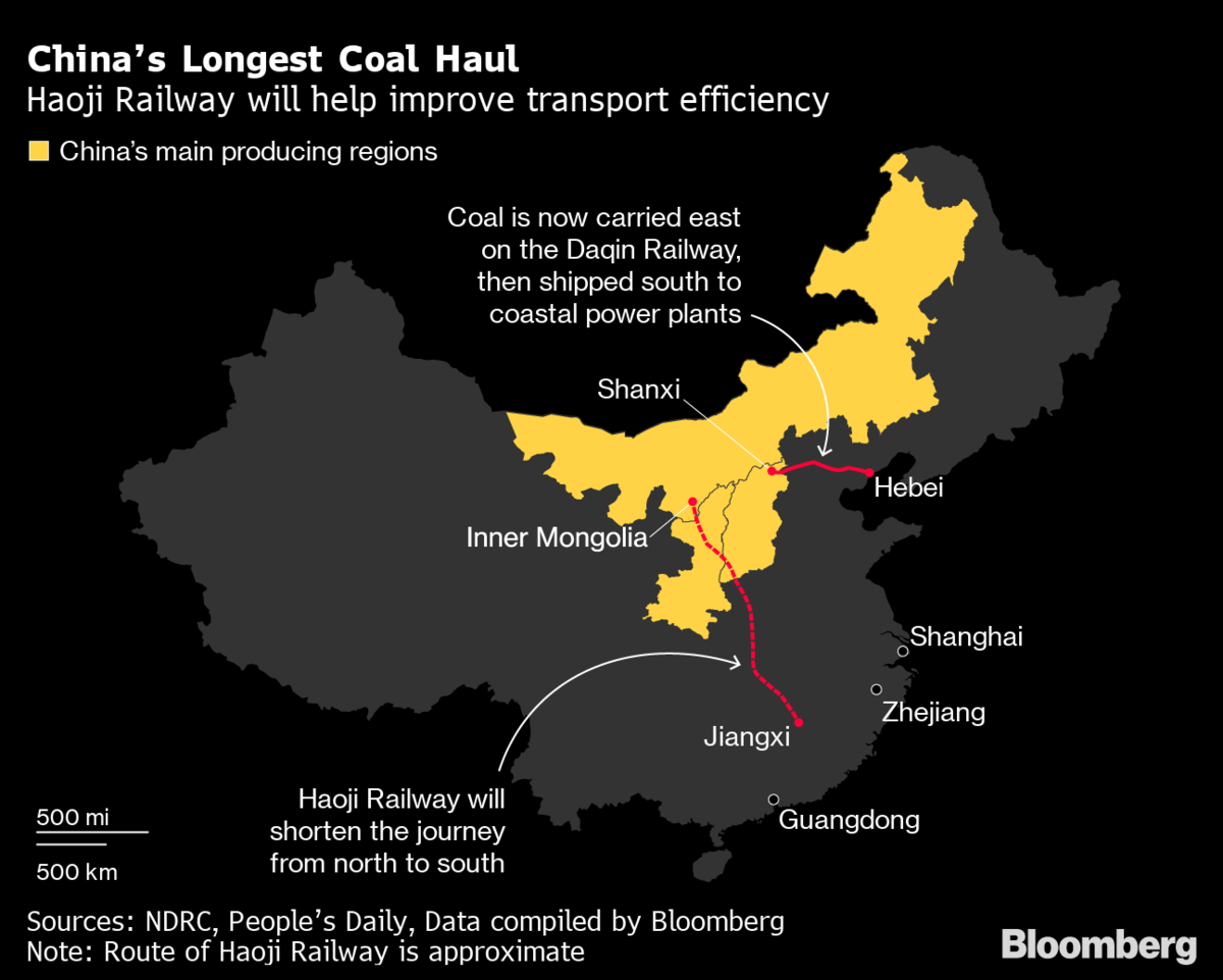 The startup of Haoji isn’t in conflict with China’s broader energy goals, said Ding Yihong, a chief analyst at Huaxi Securities Co. Coal plays a major role in securing the nation’s energy supply, while direct rail transportation is less polluting than diesel trucks, according to Ding.