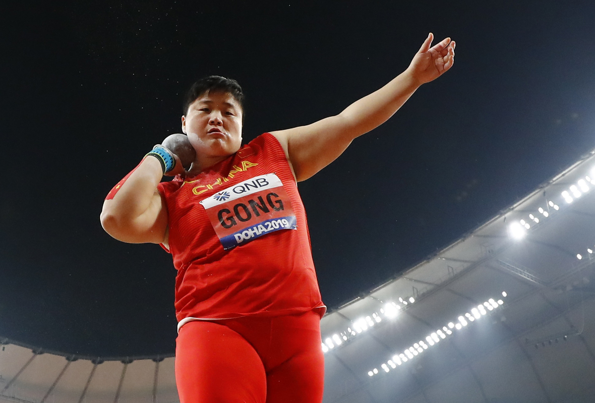 Gong, who has won 13 of her 14 competitions this season, led from the first round with a throw of 19.07 metres, bettered that with 19.42 on her second and then managed 19.55 with her fourth.