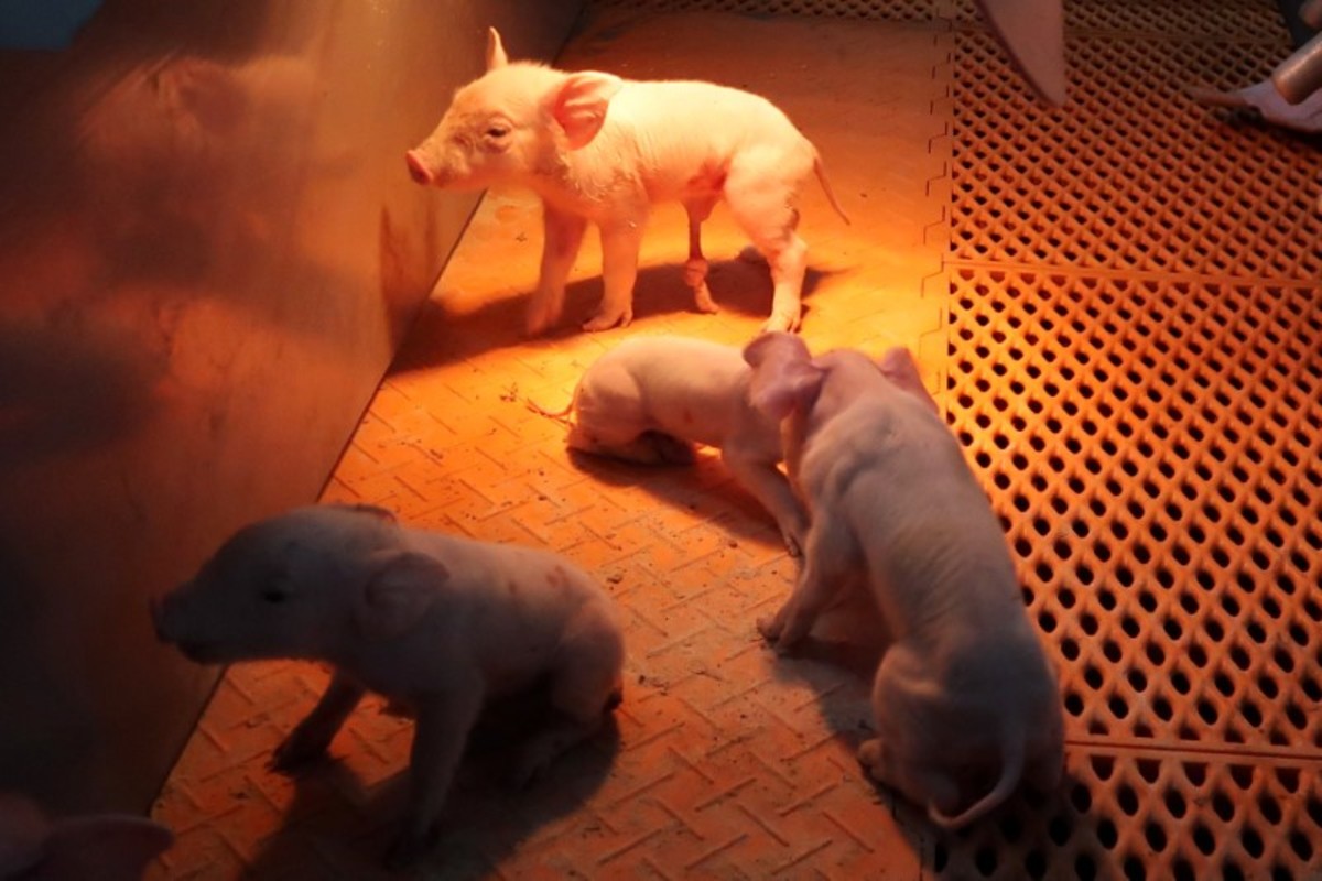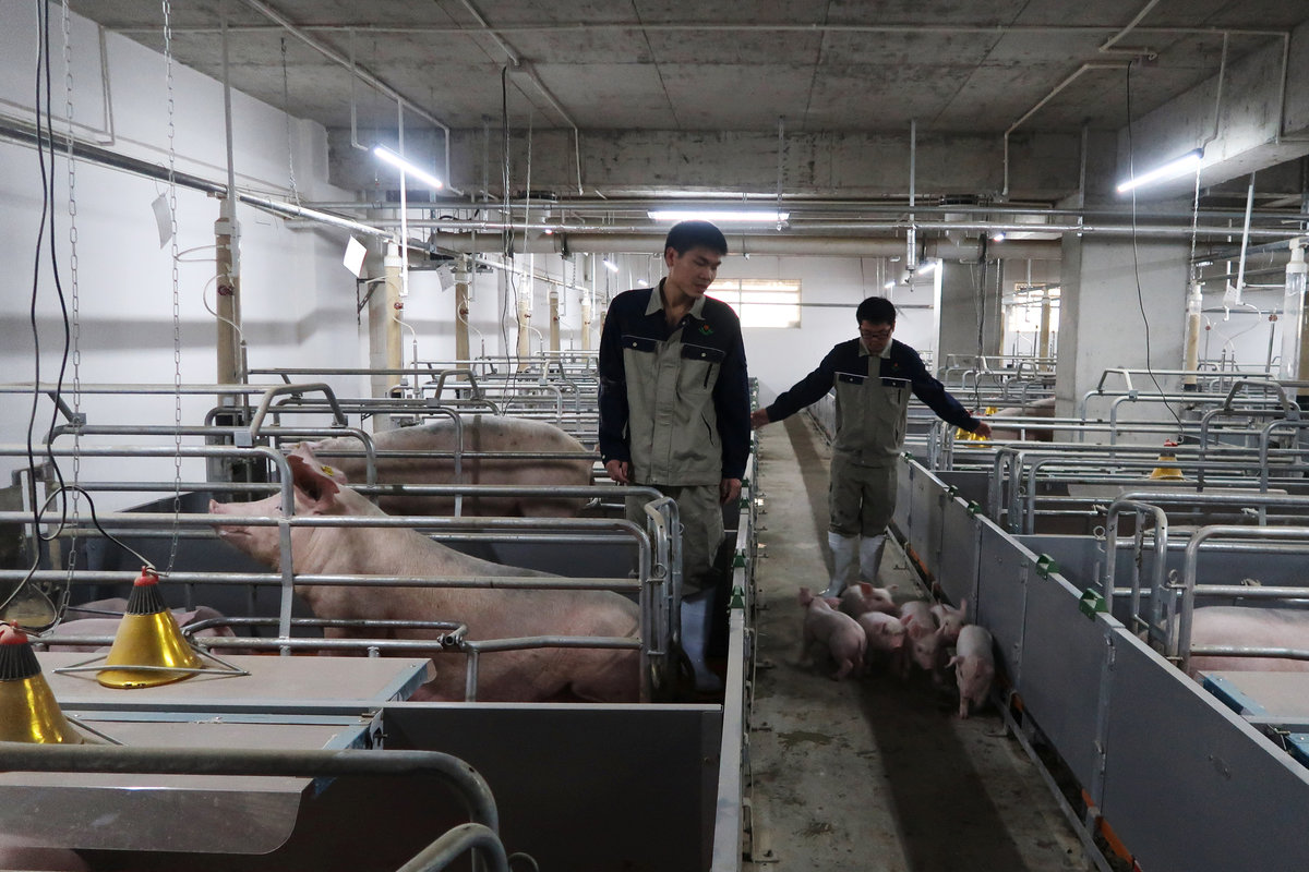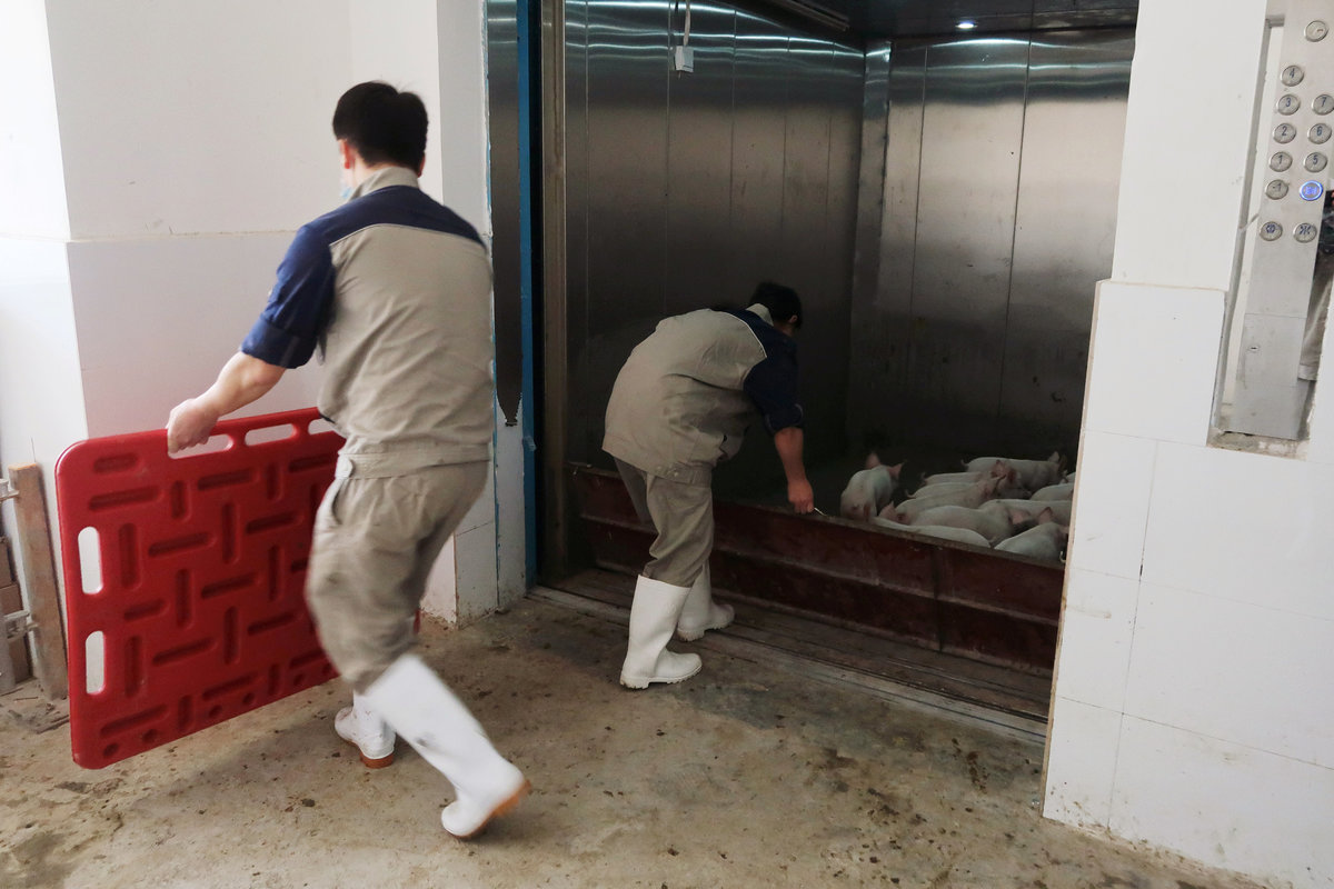 Farm manager Xu said Yangxiang reduces the risk of disease by managing each floor separately, with staff working on the same floor every day. New sows are introduced to a building on the top floor, and are then moved by elevator to an assigned level, where they remain.