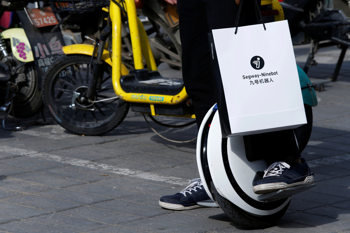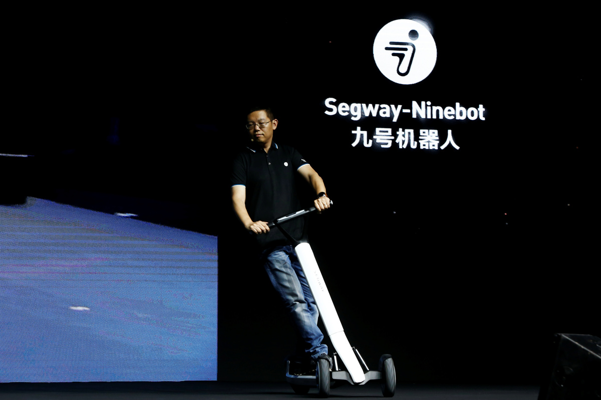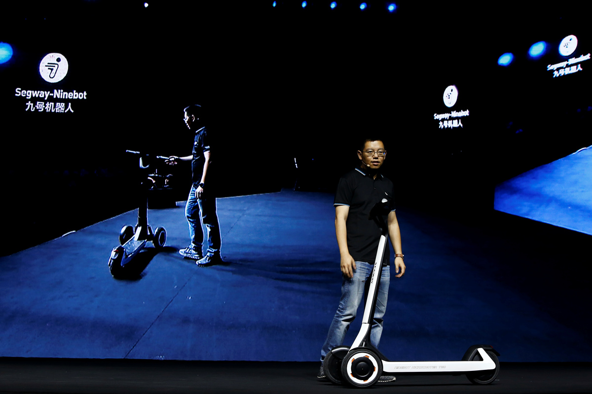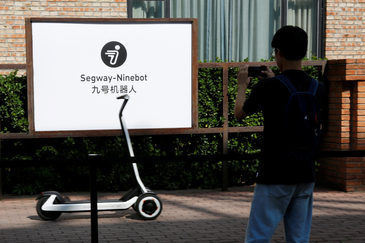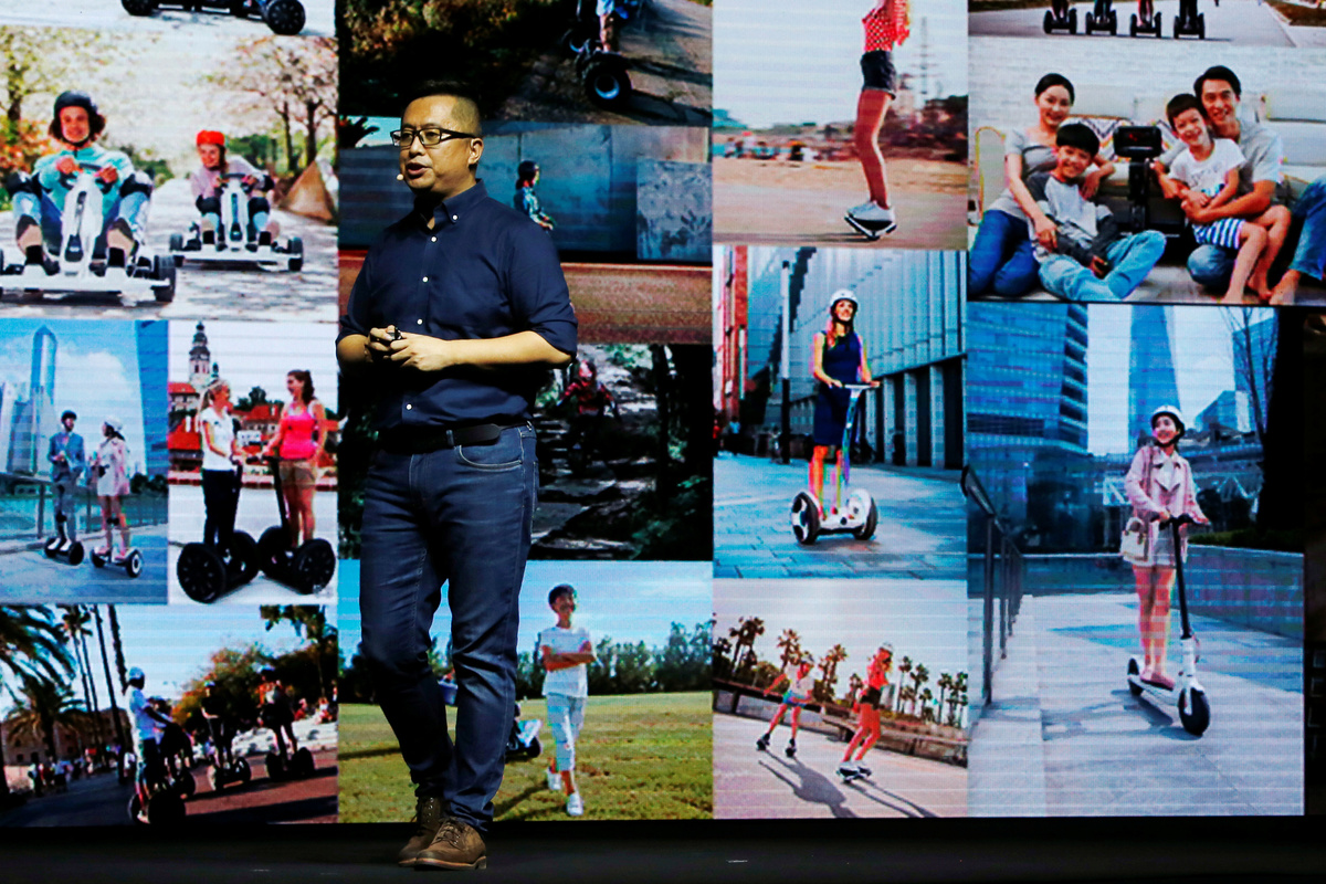 Ninebot President Wang Ye unveils semi-autonomous scooter KickScooter T60 that can return itself to charging stations without a driver, at a Segway-Ninebot product launch event in Beijing, China August 16, 2019. REUTERS/Florence LoNinebot President Wang Ye unveils semi-autonomous scooter KickScooter T60 that can return itself to charging stations without a driver, at a Segway-Ninebot product launch event in Beijing, China August 16, 2019. REUTERS/Florence LoNinebot Chief Executive Officer Gao Lufeng attends a Segway-Ninebot product launch event in Beijing, China August 16, 2019. REUTERS/Florence LoNinebot Chief Executive Officer Gao Lufeng speaks at a Segway-Ninebot product launch event in Beijing, China August 16, 2019. REUTERS/Florence LoNinebot Chief Executive Officer Gao Lufeng speaks at a Segway-Ninebot product launch event in Beijing, China August 16, 2019. REUTERS/Florence LoNinebot Chief Executive Officer Gao Lufeng speaks at a Segway-Ninebot product launch event in Beijing, China August 16, 2019. REUTERS/Florence LoDelivery robot Segway DeliveryBot X1 is unveiled at a Segway-Ninebot product launch event in Beijing, China August 16, 2019. REUTERS/Florence LoA man rides a Ninebot One electric unicycle near the venue of a Segway-Ninebot product launch event in Beijing, China August 16, 2019. REUTERS/Florence LoA man tries a Segway self-balancing scooter before a Segway-Ninebot product launch event in Beijing, China August 16, 2019. REUTERS/Florence Lo