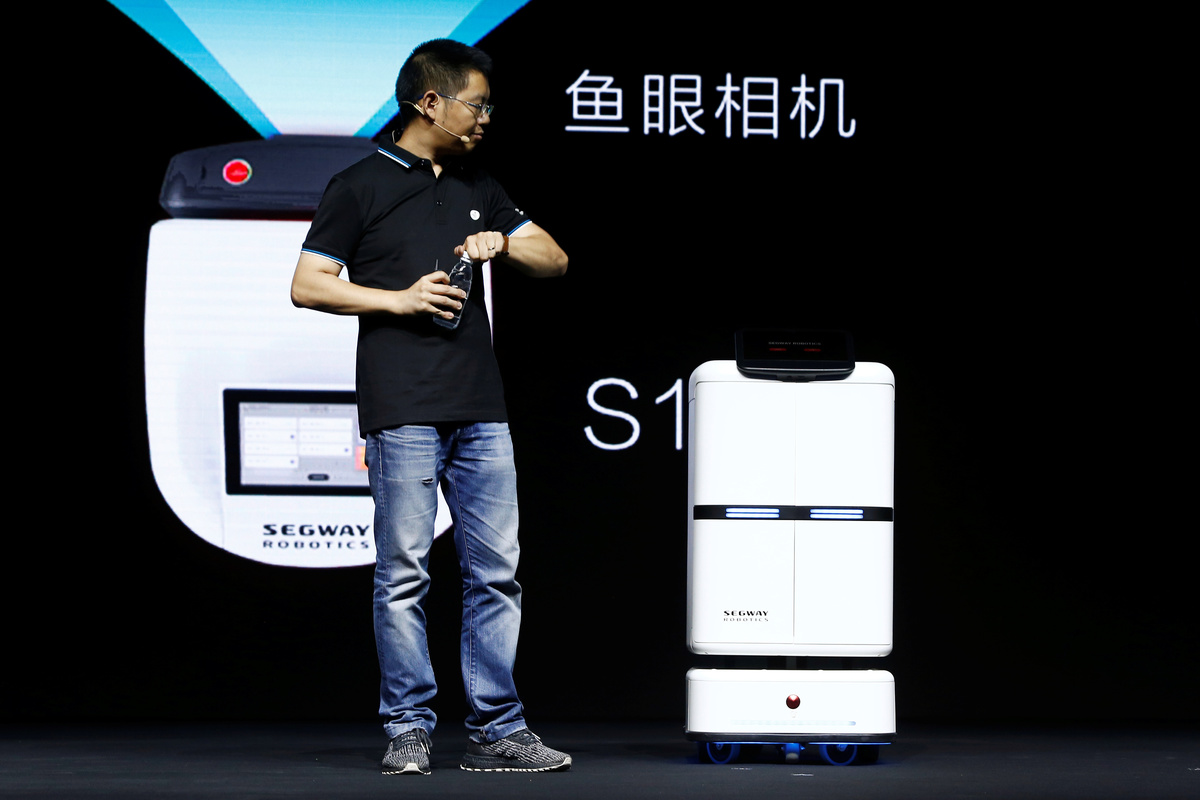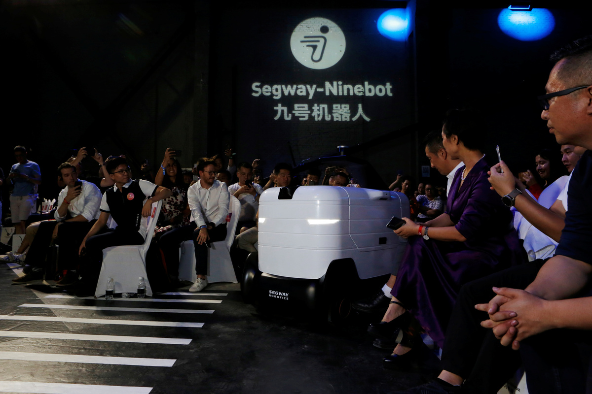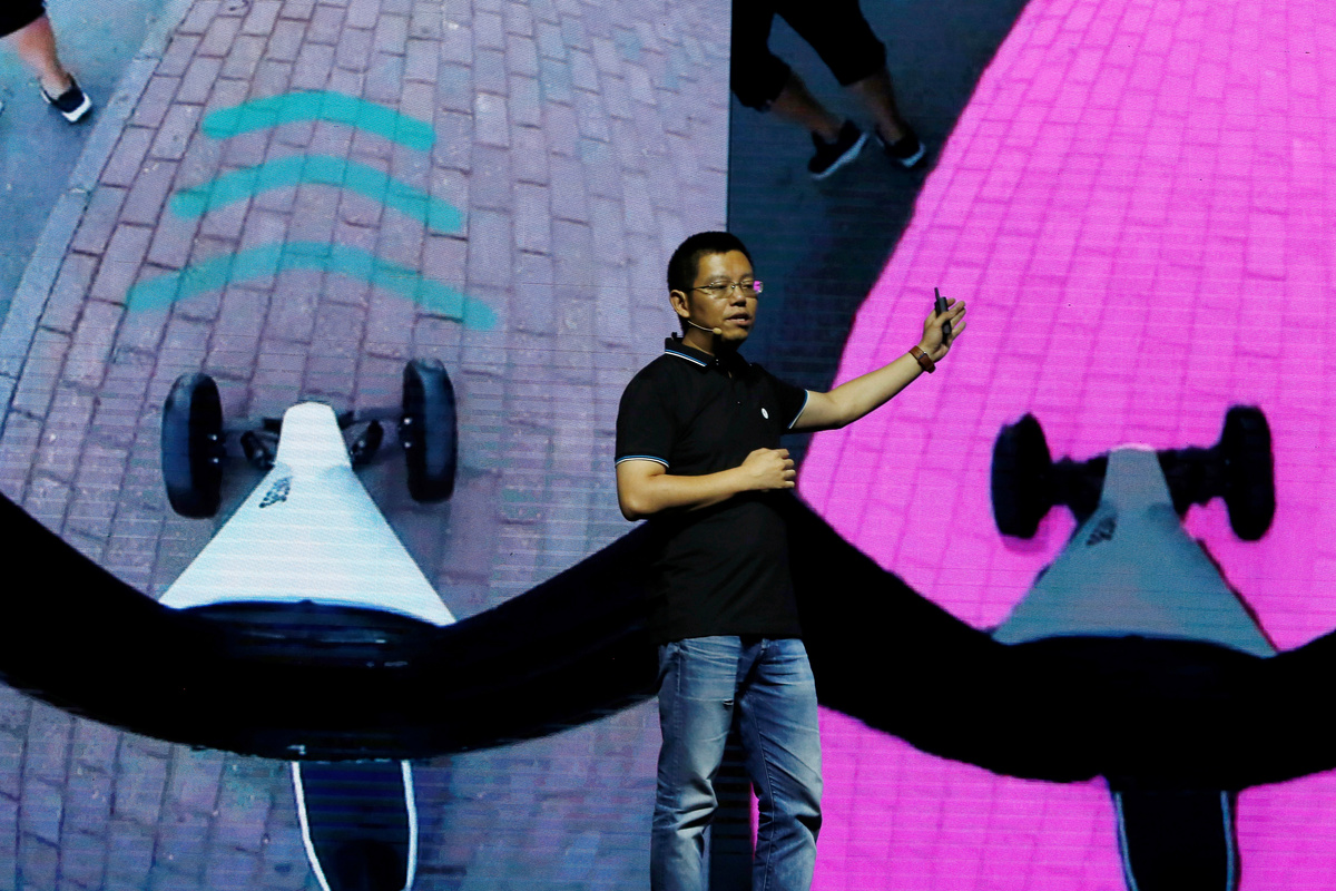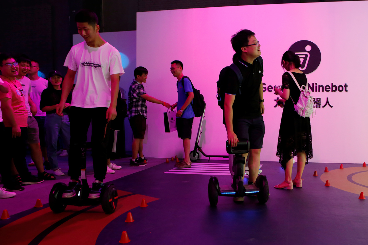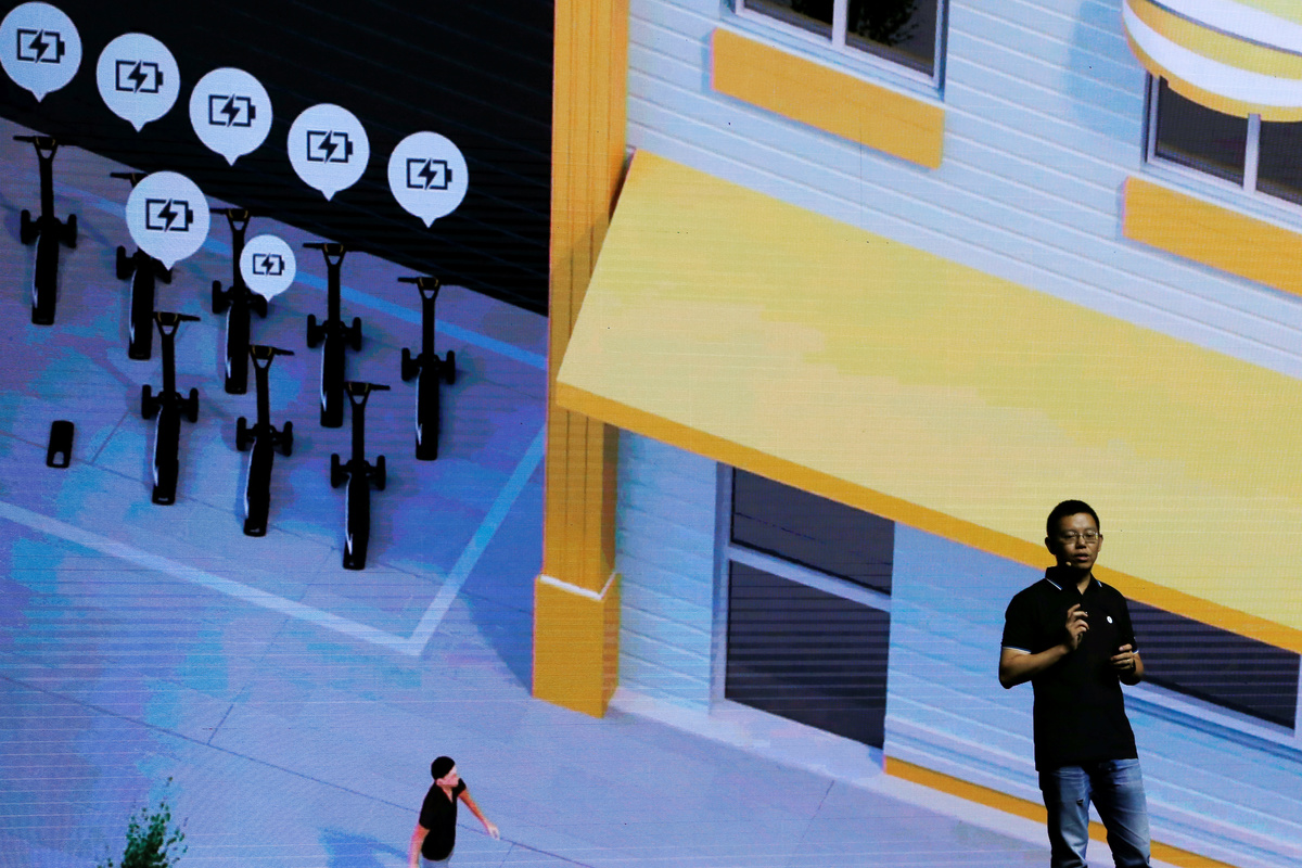 Ninebot President Wang Ye unveils semi-autonomous scooter KickScooter T60 that can return itself to charging stations without a driver, at a Segway-Ninebot product launch event in Beijing, China August 16, 2019. REUTERS/Florence LoNinebot President Wang Ye unveils semi-autonomous scooter KickScooter T60 that can return itself to charging stations without a driver, at a Segway-Ninebot product launch event in Beijing, China August 16, 2019. REUTERS/Florence LoNinebot Chief Executive Officer Gao Lufeng attends a Segway-Ninebot product launch event in Beijing, China August 16, 2019. REUTERS/Florence LoNinebot Chief Executive Officer Gao Lufeng speaks at a Segway-Ninebot product launch event in Beijing, China August 16, 2019. REUTERS/Florence LoNinebot Chief Executive Officer Gao Lufeng speaks at a Segway-Ninebot product launch event in Beijing, China August 16, 2019. REUTERS/Florence LoNinebot Chief Executive Officer Gao Lufeng speaks at a Segway-Ninebot product launch event in Beijing, China August 16, 2019. REUTERS/Florence LoDelivery robot Segway DeliveryBot X1 is unveiled at a Segway-Ninebot product launch event in Beijing, China August 16, 2019. REUTERS/Florence LoA man rides a Ninebot One electric unicycle near the venue of a Segway-Ninebot product launch event in Beijing, China August 16, 2019. REUTERS/Florence LoA man tries a Segway self-balancing scooter before a Segway-Ninebot product launch event in Beijing, China August 16, 2019. REUTERS/Florence Lo