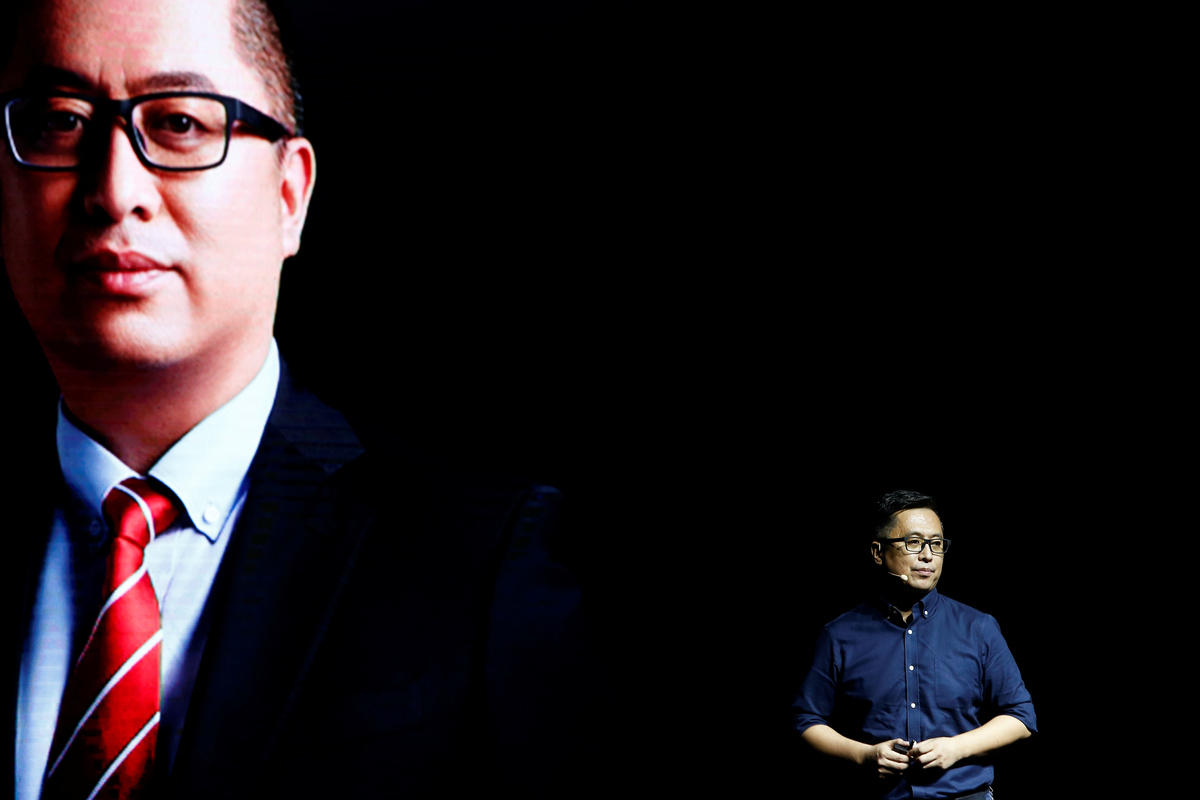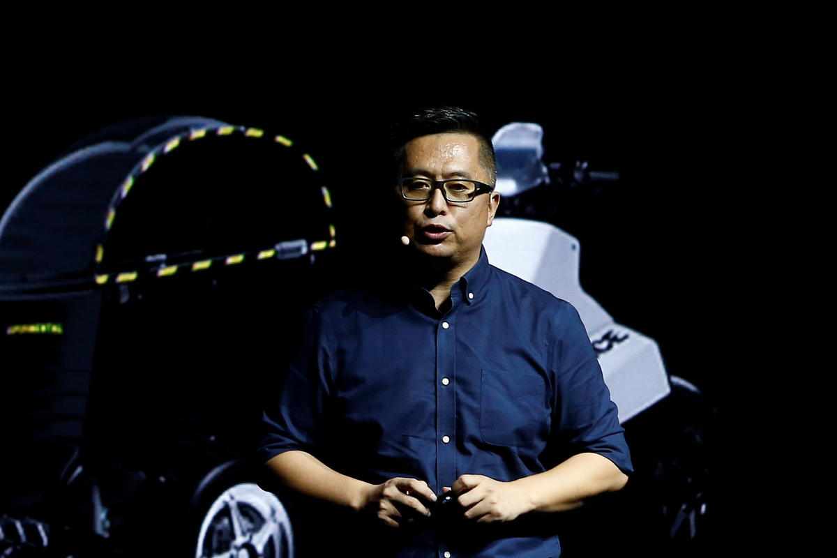 Ninebot President Wang Ye unveils semi-autonomous scooter KickScooter T60 that can return itself to charging stations without a driver, at a Segway-Ninebot product launch event in Beijing, China August 16, 2019. REUTERS/Florence Lo