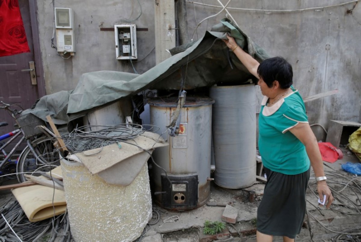 On a recent visit to Yao's village of Xiaozhangwan, a few kilometers from the outskirts of Beijing, old boilers were stacked along dusty narrow alleyways ready for scrapping.