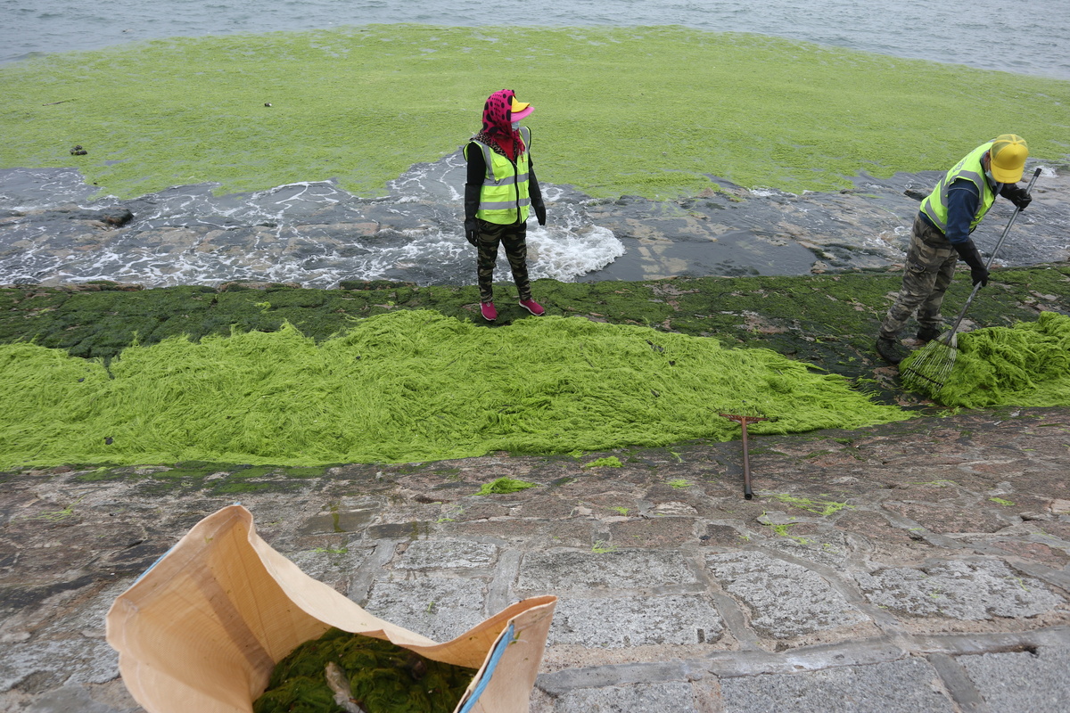 Experts have previously said the explosion of algae follows intensive farming of seaweed in the nearby region and increasing organic matter such as nitrogen and phosphorus coming from fertilisers and residential sewage washed into the sea.