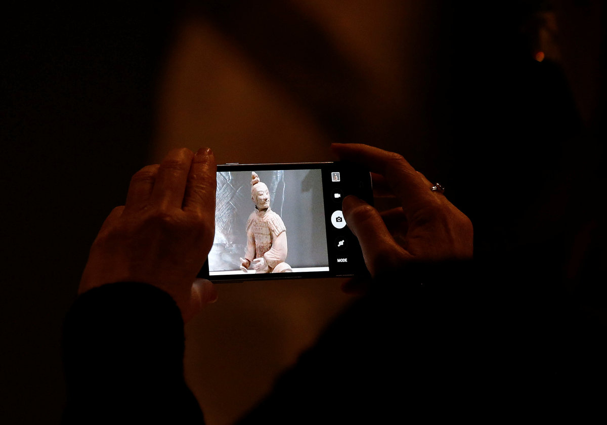 A visitor photographs a Terracotta Warrior which guarded the tomb of China’s First Emperor, Qin Shi Huang, on loan from China as it is displayed in The World Museum, Liverpool, Britain February 6, 2017.REUTERS/Andrew Yates