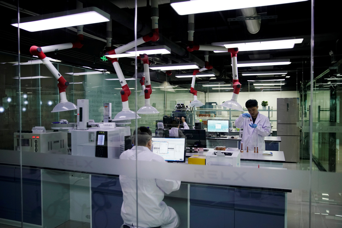 (Reuters) - In a glass-walled laboratory, chemists puff on vaping devices as they test liquid nicotine flavors. Nearby, staffers with cartons of instant noodles on their desks tap away at laptops, messaging suppliers and customers.