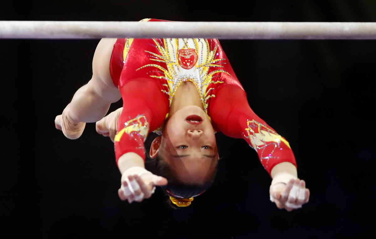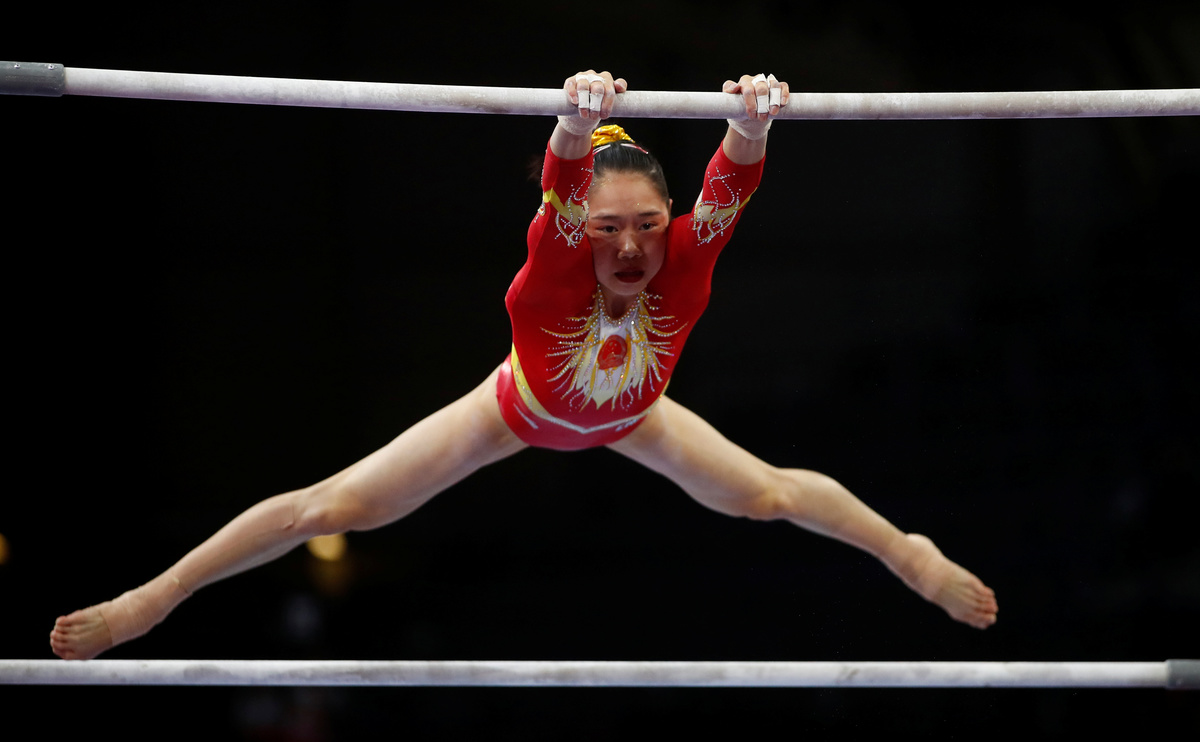 Artistic Gymnastics - 2019 World Artistic Gymnastics Championships - Women's Qualifications - Uneven Bars - Hanns-Martin-Schleyer-Halle, Stuttgart, Germany - October 4, 2019 China's Chen Yile in action REUTERS/Wolfgang Rattay