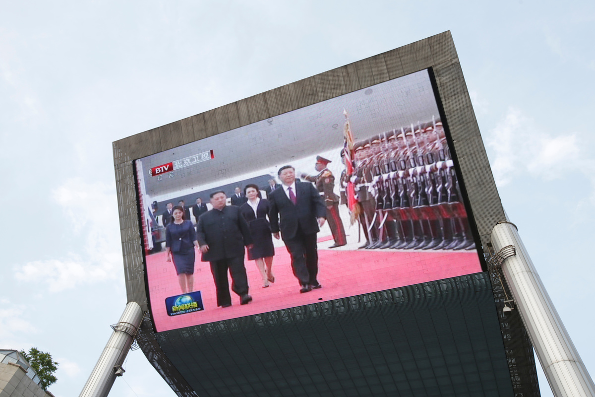 Kim Jong Un and his wife, Ri Sol Ju, greeted Xi at the airport, Chinese state TV said. Kim's sister, Kim Yo Jong, and officials who played prominent roles in recent nuclear talks with the United States were also on hand.