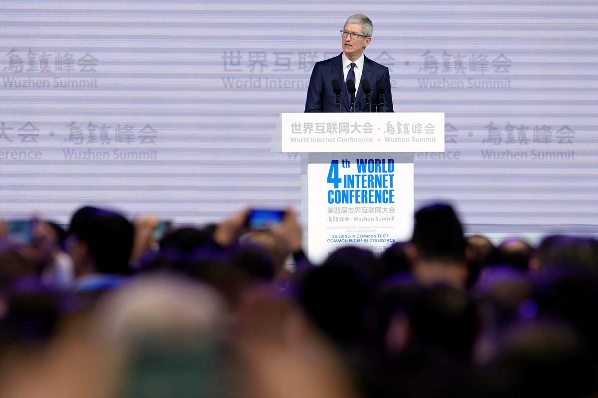 Apple CEO Tim Cook attends the opening ceremony of the fourth World Internet Conference in Wuzhen, Zhejiang province, China, December 3, 2017. REUTERS/Aly Song
