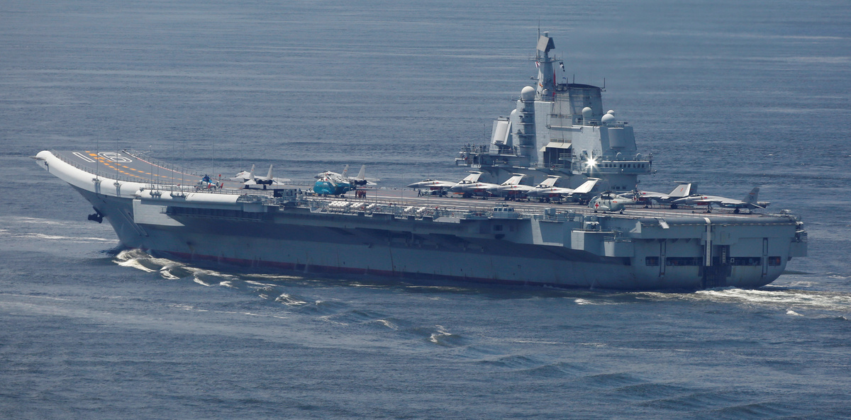 China's navy said the carrier group, lead by the Liaoning, the country's first aircraft carrier put into active service, was carrying out "routine" drills in the waters near Taiwan.
