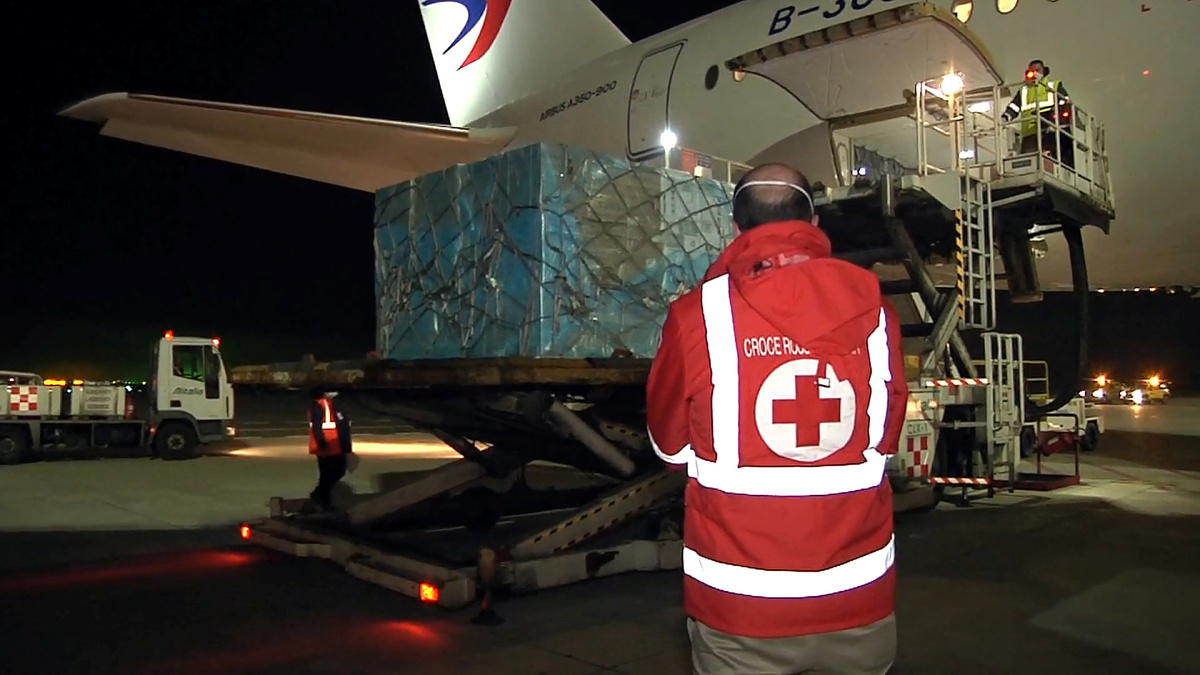 "In this moment of great stress, of great difficulty, we are relieved to have this arrival of supplies. It is true that it will help only temporarily, but it is still important," said the head of the Italian Red Cross, Francesco Rocca.
