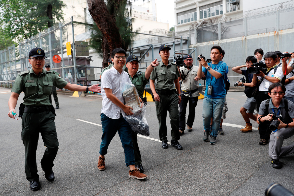 In a coincidence of timing, 22-year-old Joshua Wong, the face of Hong Kong's push for full democracy, walked free from prison on Monday.