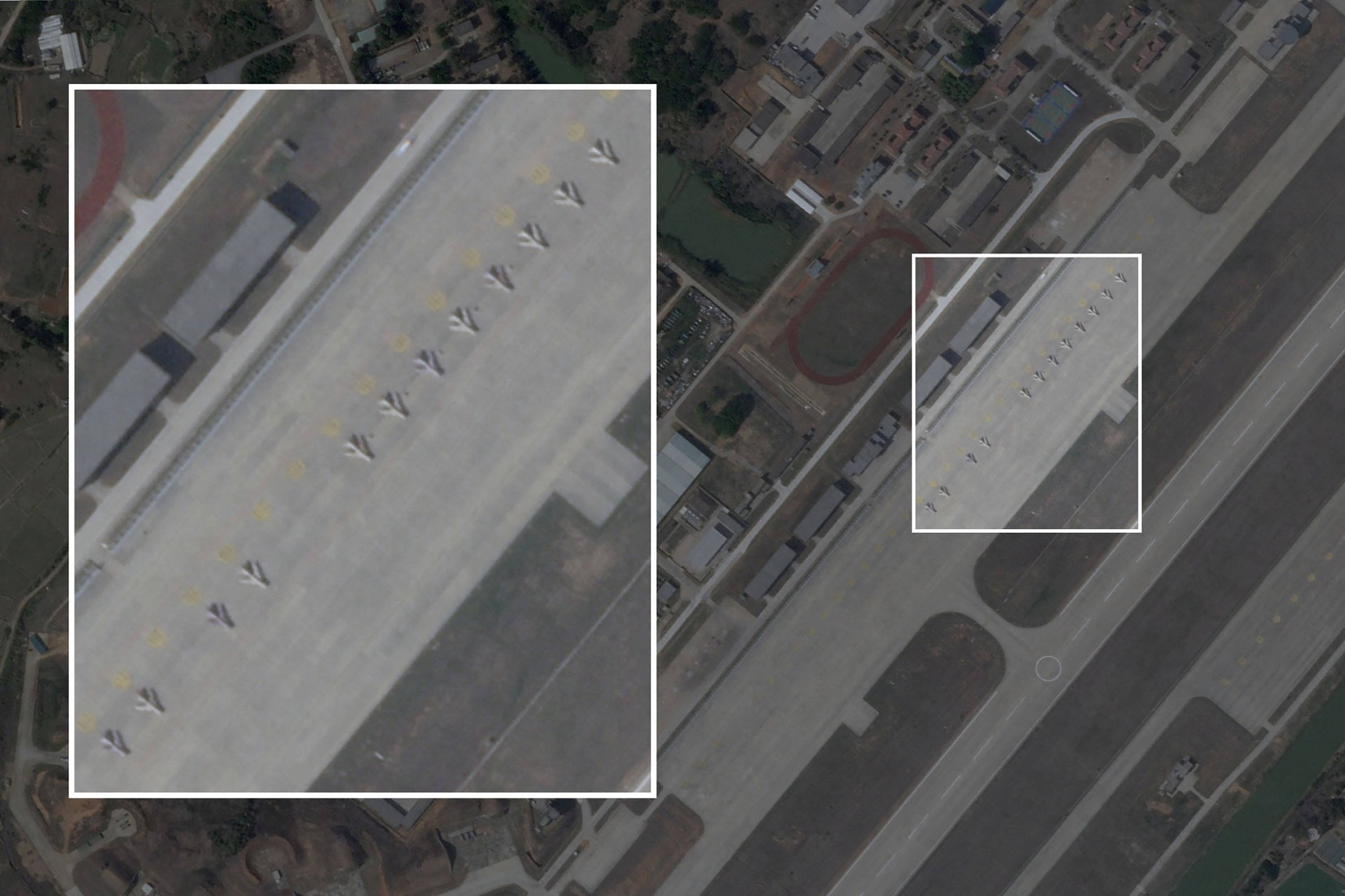 The J-6 fighters that were first flown with the Chinese air force in the 1960s, have now been modified into attack drones, the satellite imagery of the airfields show, according to a report by the Mitchell Institute for Aerospace Studies. The images show what appear to be lines of stubby, swept-winged aircraft matching the shape of J-6 fighters.
