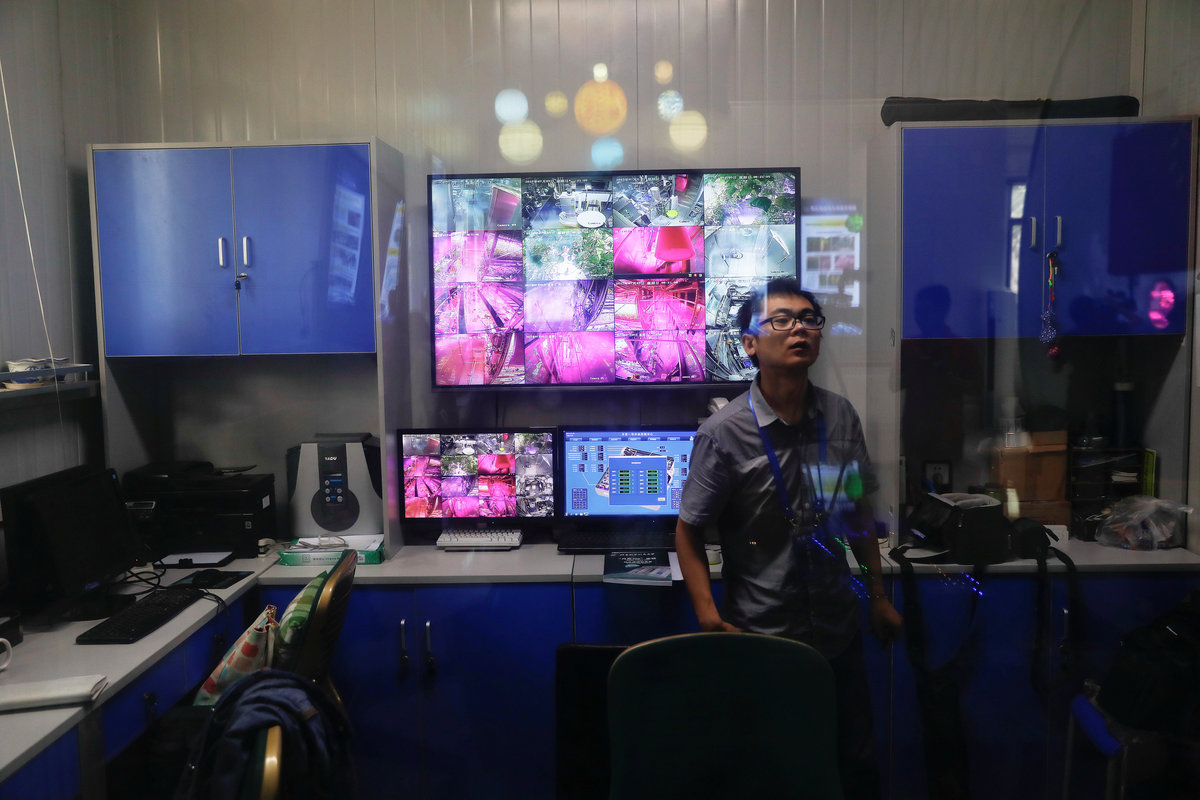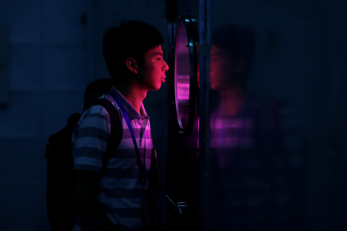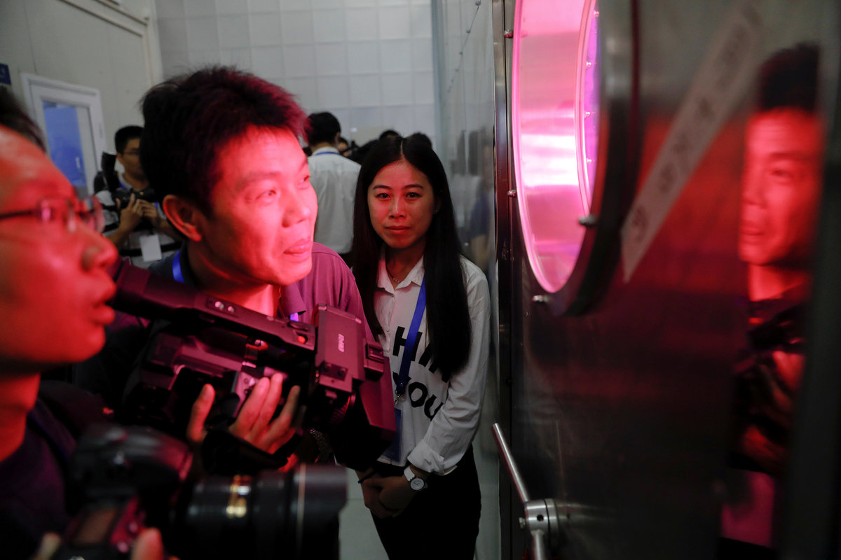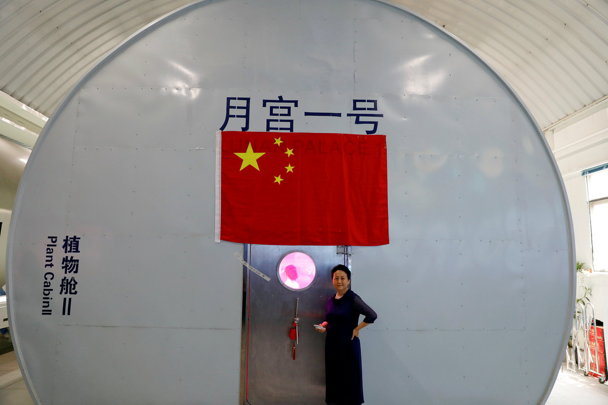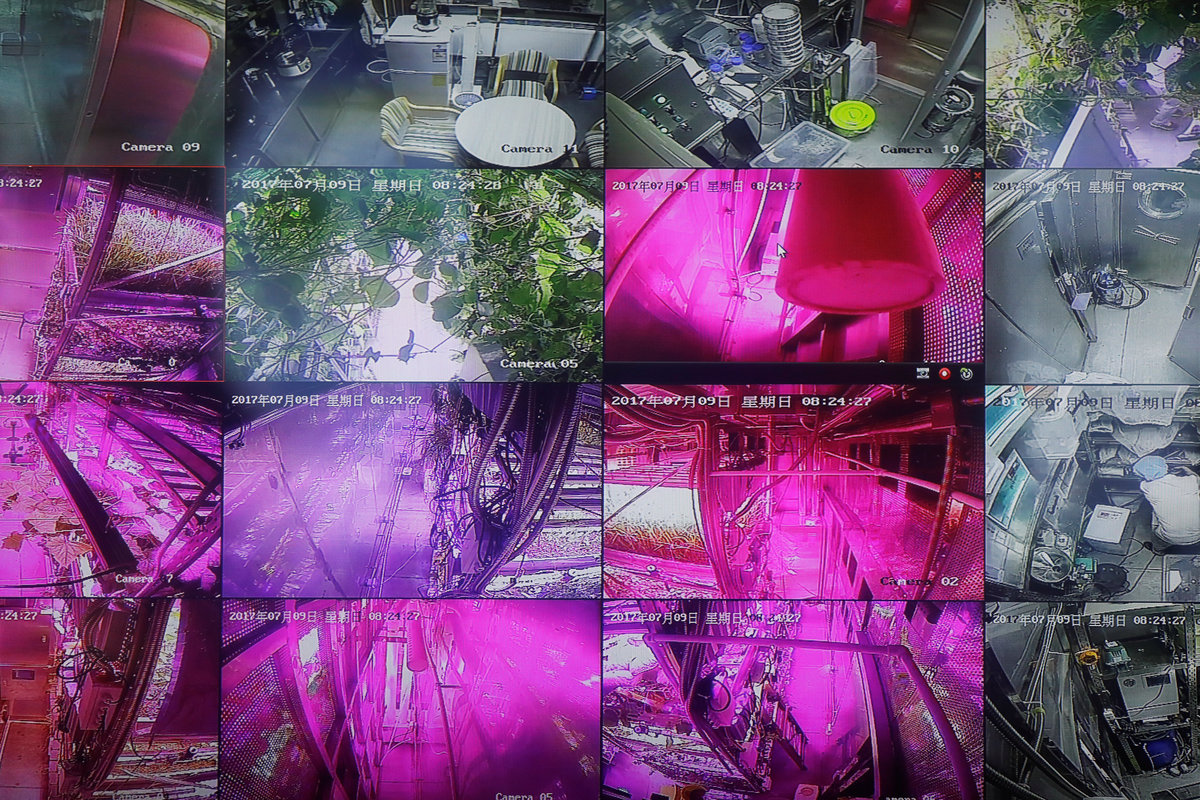 Screens in a control room show images from inside a simulated space cabin in which volunteers temporarily live as a part of the scientistic Lunar Palace 365 Project, at Beihang University in Beijing, China July 9, 2017. REUTERS/Damir SagoljA volunteer answers reporters' questions from inside a simulated space cabin in which she temporarily lives with others as a part of the scientistic Lunar Palace 365 Project, at Beihang University in Beijing, China July 9, 2017. REUTERS/Damir SagoljA member of staff is seen in front of screens showing inside of a simulated space cabin in which volunteers temporarily live as a part of the scientistic Lunar Palace 365 Project, at Beihang University in Beijing, China July 9, 2017. REUTERS/Damir SagoljA man peeks inside a simulated space cabin in which volunteers temporarily live as a part of the scientistic Lunar Palace 365 Project, at Beihang University in Beijing, China July 9, 2017. REUTERS/Damir SagoljVolunteers check on plants inside a simulated space cabin in which they temporarily live as a part of the scientistic Lunar Palace 365 Project, at Beihang University in Beijing, China July 9, 2017. REUTERS/Damir SagoljReporters peek inside a simulated space cabin in which volunteers temporarily live as a part of the scientistic Lunar Palace 365 Project, at Beihang University in Beijing, China July 9, 2017.REUTERS/Damir SagoljLiu Hong, chief designer of the Lunar Palace 365 Project stands outside a simulated space cabin in which volunteers temporarily live as a part of the project at Beihang University in Beijing, China July 9, 2017. REUTERS/Damir Sagolj