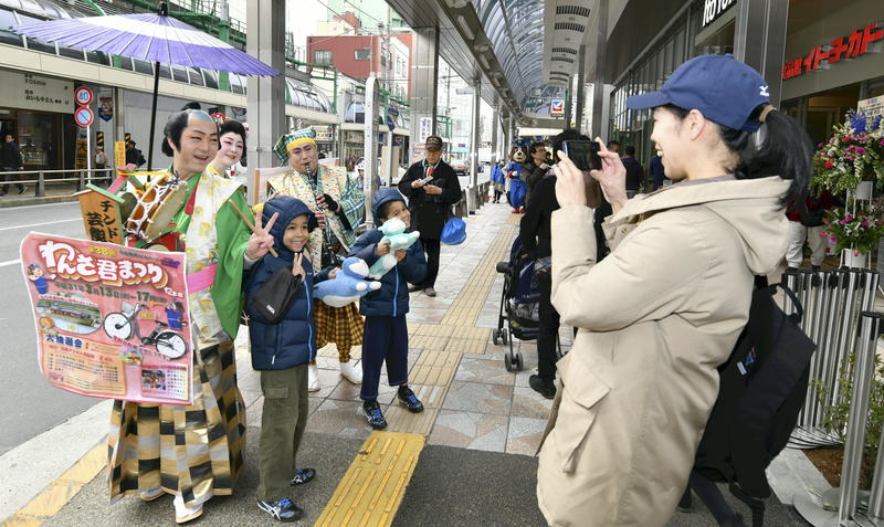 "Go to a lottery and enjoy it by all means! This is the last Wansa-kun festival in the Heisei era! Liven up your day!" said Nagata in a powerfully resounding voice, while marching through the area clad in a kimono that looked like a costume out of a period drama.