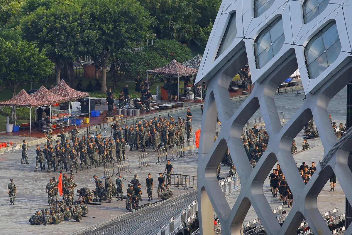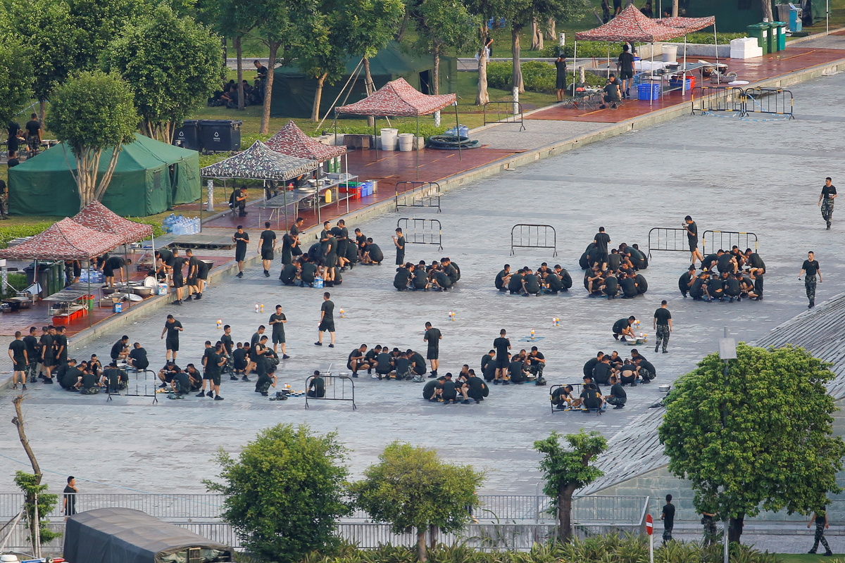 Hundreds of China's People's Armed Police (PAP) on Thursday conducted exercises at a sports stadium in Shenzhen that borders Hong Kong a day after the U.S. State Department said it was "deeply concerned" about the movements, which have prompted worries that the troops could be used to break up protests.