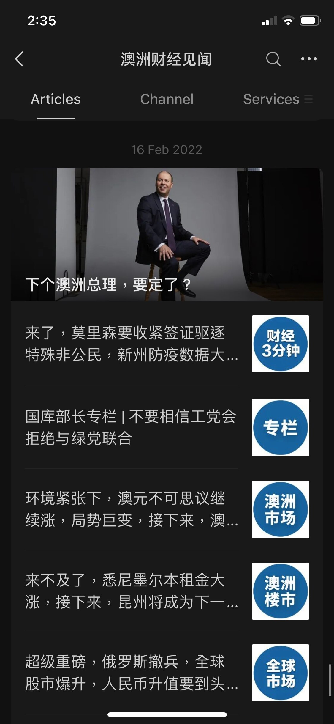 Mr Frydenberg's campaign also appeared to have provided AFN, and another WeChat channel, with original materials that would later appear in effusive articles.