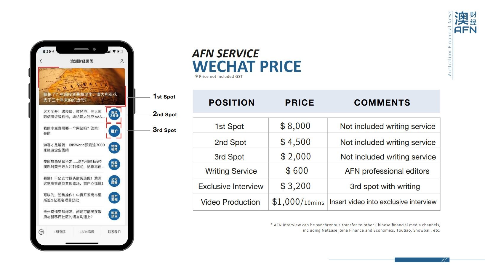 The ABC has discovered a proposal from AFN for a political candidate that offers, for a fixed price, six weeks of ads, as well as a video and article on WeChat.