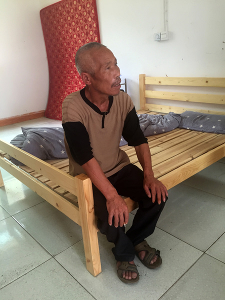 Jixiang now lives in the Baishi Town Central Elderly Home, a low-lying white building surrounding a grassy courtyard a few miles from Xinlong. He has a small room, furnished with only a bed, a dresser and a television.