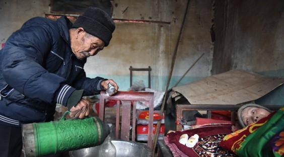 Du Yuanfa, 84, of Sunjiayu, in east China's Shandong Province, gave up his job as a coal miner in 1959, shortly after Zhou Yu'ai contracted a mysterious illness and became completely paralysed.