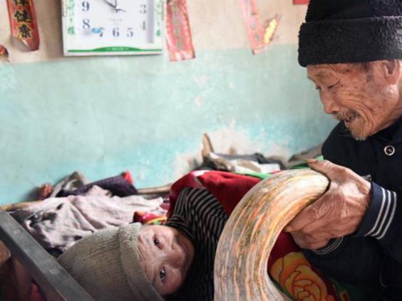 The couple, who live in a simple stone-built home, were told that Zhou was infertile and would be confined to her bed for the rest of her life.