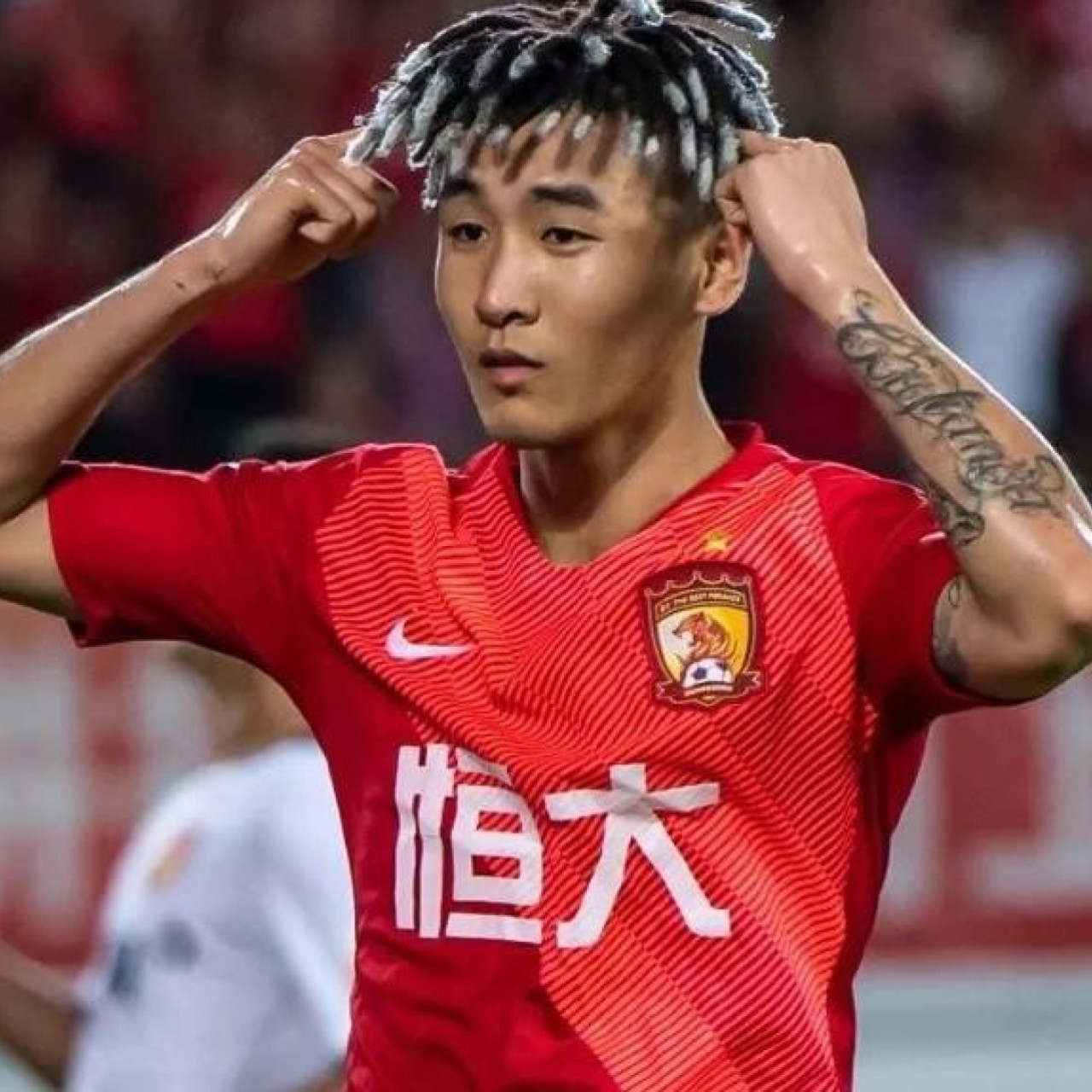 The 24-year-old’s new look is a dreadlock style with dyed tips. He debuted it on his private Instagram account late last week and it was made public at Tianhe Stadium on Saturday night.