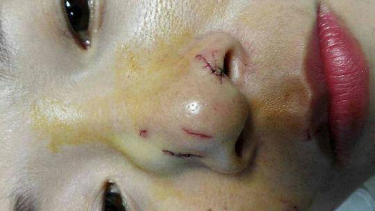Ms Jin Jing posted a selfie after she received stitches for the bite, which was circulated on Chinese social media.