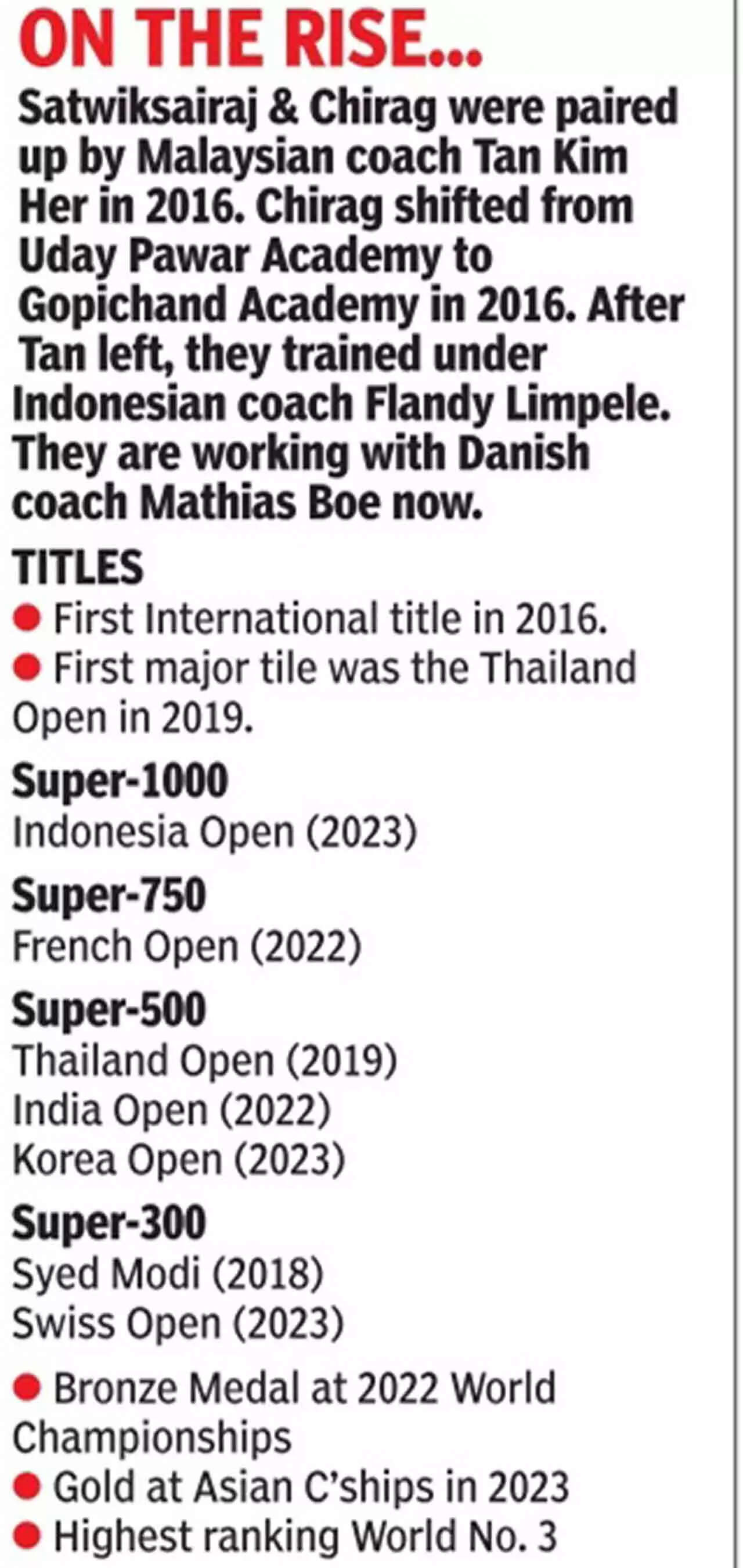 Chirag was doing well in both categories, and the ultimatum left him in a fix. Pawar was clear that doubles would suit his ward more. "He had a natural aptitude for doubles, so I pressed upon him to prefer that," Uday told TOI.