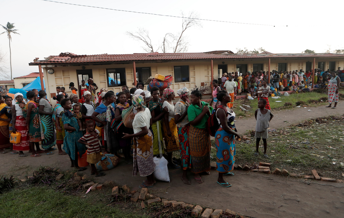 People, moved from school where they were taking refuge, queue to settle at a camp for people displaced in the aftermath of Cyclone Idai in Beira, Mozambique March 30, 2019. REUTERS/Zohra Bensemra