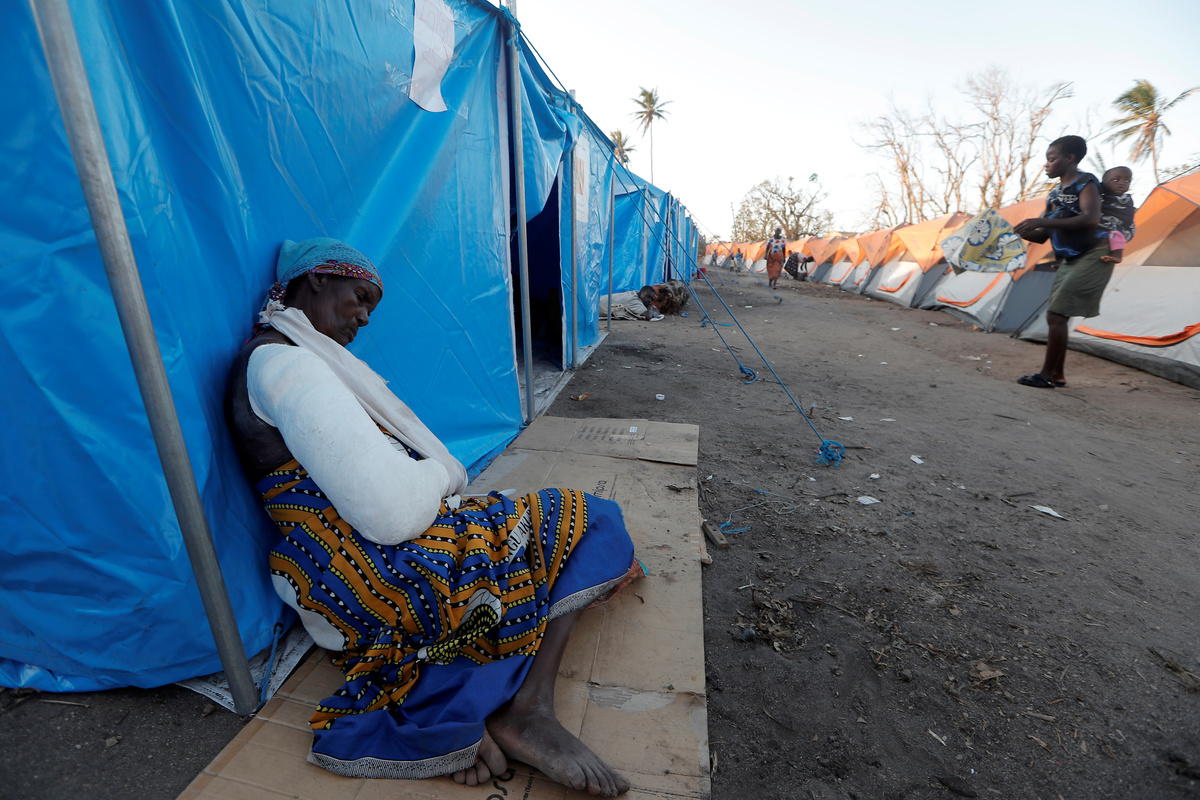 Displaced people arrive at a camp, from a school where they were taking refuge, in the aftermath of Cyclone Idai in Beira, Mozambique March 30, 2019. REUTERS/Zohra BensemraMadelana Jose, 71, rests beside her tent at a camp for people displaced in the aftermath of Cyclone Idai in Beira, Mozambique March 30, 2019. REUTERS/Zohra BensemraAlimu, 3, is pictured at a camp for people displaced in the aftermath of Cyclone Idai in Beira, Mozambique March 30, 2019. REUTERS/Zohra BensemraDisplaced people arrive at a camp, from a school where they were taking refuge, in the aftermath of Cyclone Idai in Beira, Mozambique March 30, 2019. REUTERS/Zohra BensemraDisplaced people arrive at a camp, from a school where they were taking refuge, in the aftermath of Cyclone Idai in Beira, Mozambique March 30, 2019. REUTERS/Zohra Bensemra