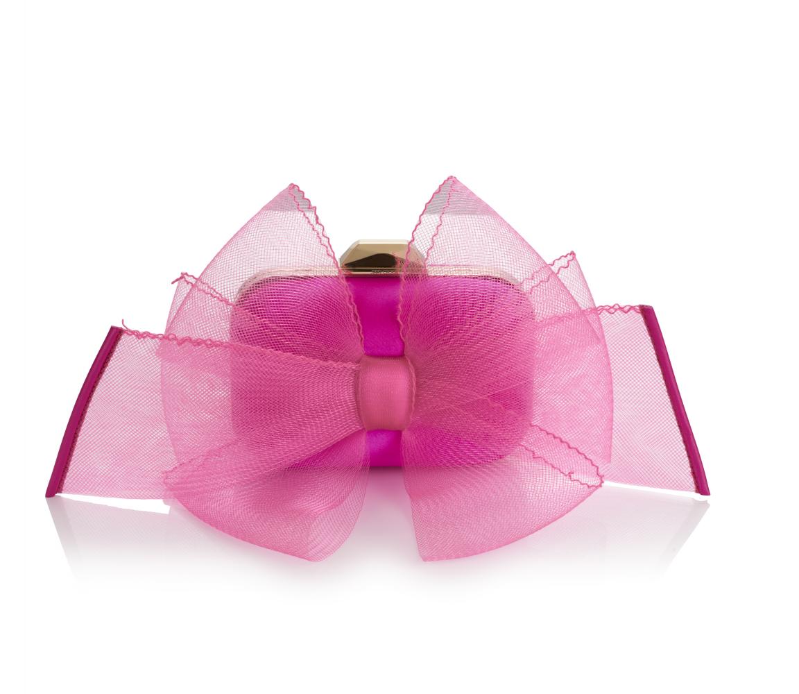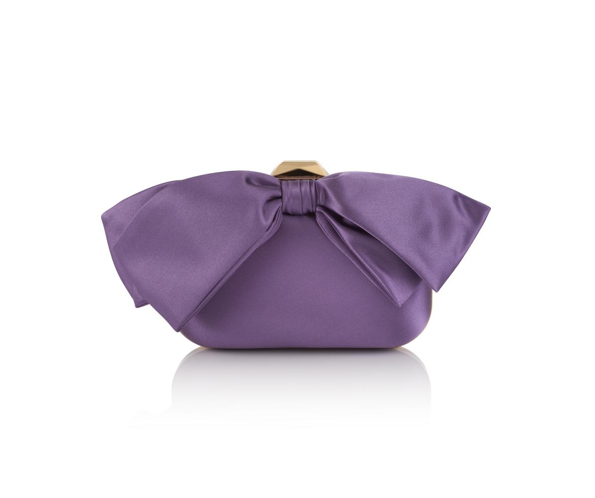The satin Cloud clutch in wisteria and velvet Bon Bon bags also adopt the bow as their key decoration. Playful variations include the Micro Cloud clutch with an oversized Aveline mesh bow and Bon Bon with lavish swaying fringes, elongating the silhouette of the bag like how Jimmy Choo shoes attenuate a woman's silhouette.