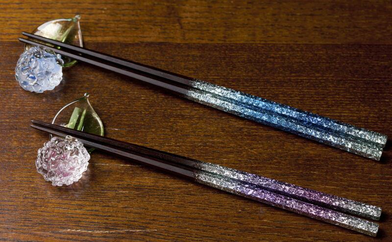 On the other hand, if the chopsticks are painted with an iridescent color, a similarly lacquered chopstick rest will match perfectly. The glossy finishes of both items really draw the eye.
