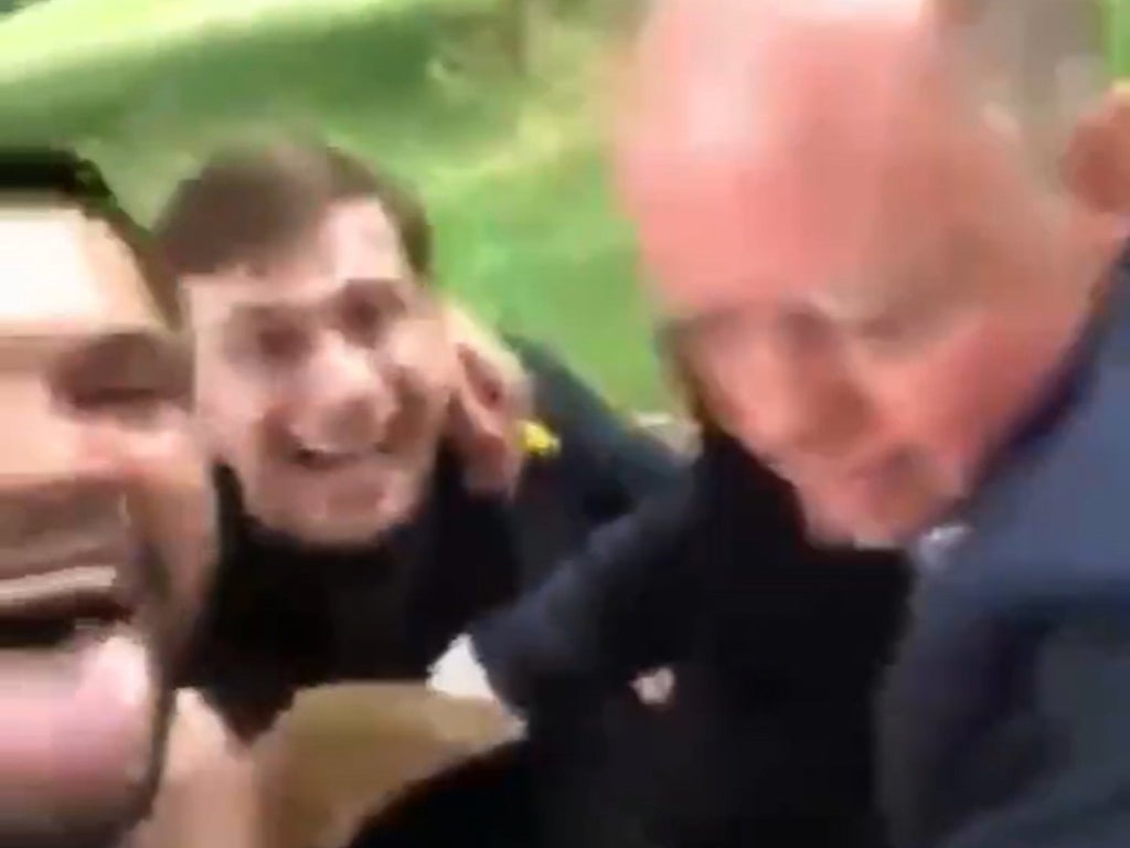 Videos posted online showed the pair grabbing and shoving Prof Whitty, heard shouting “oi oi” and “one photo please” as he tries to break free.