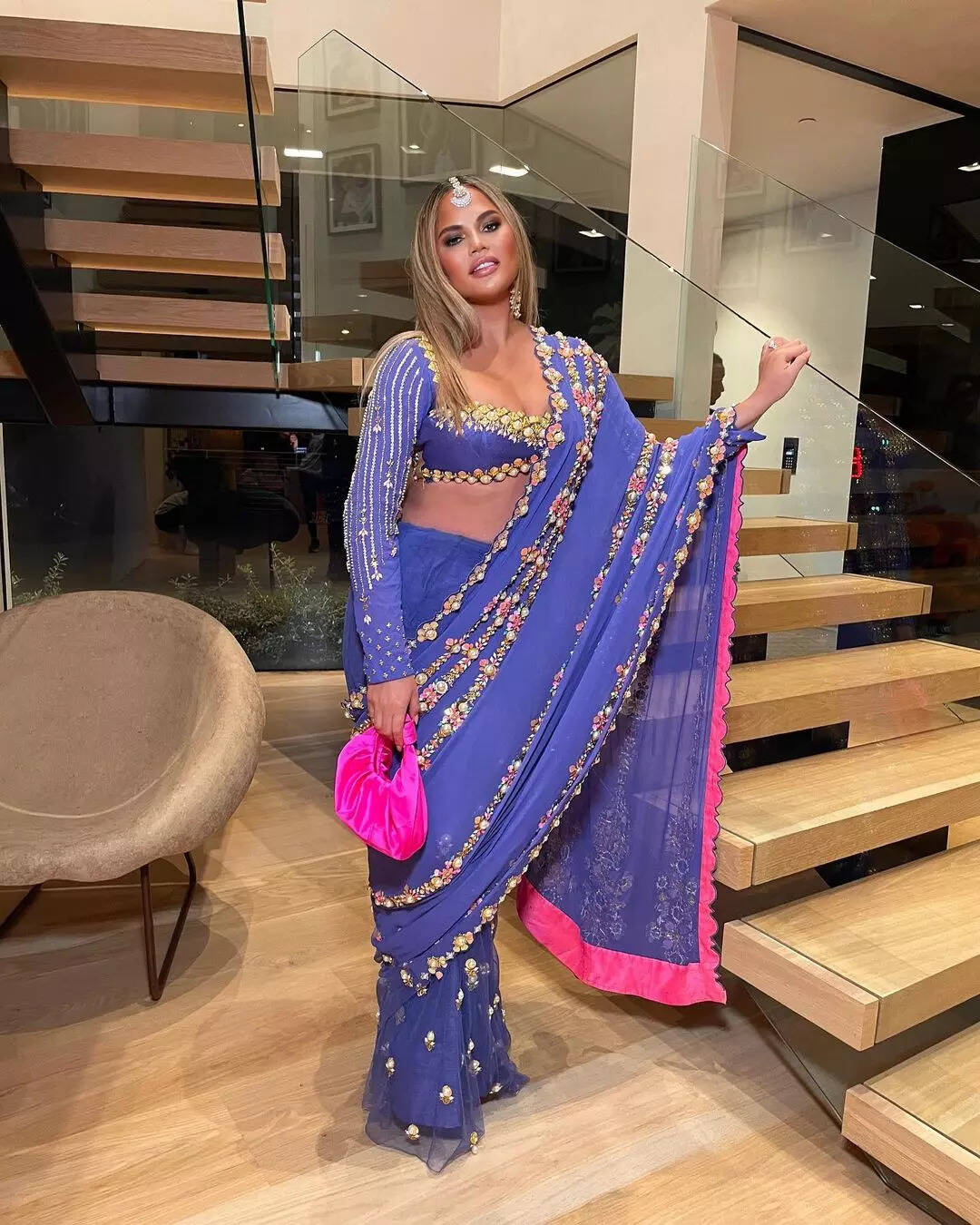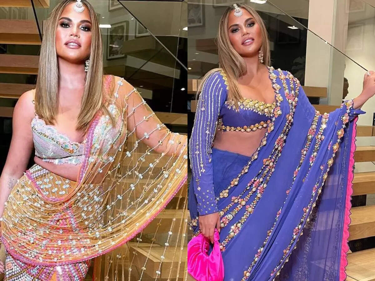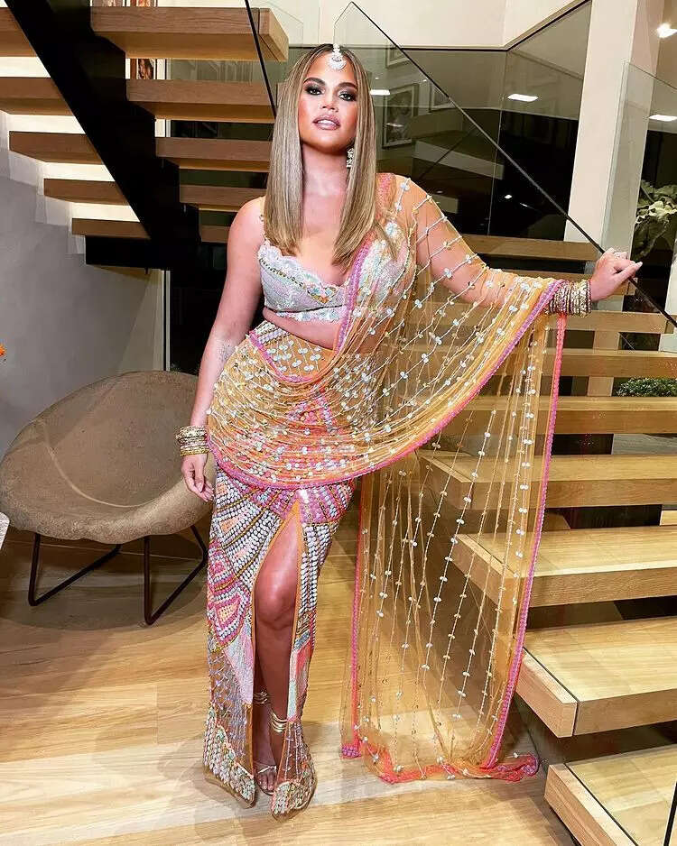 The beauty of Indian sari is such that everyone gets enamored by it. And our International stars too are in awe of it. Recently American model and TV personality Chrissy Teigen attended Priyanka Chopra and Nick Jonas' Diwali bash in Los Angeles and it was her sari that caught everyone's attention.
