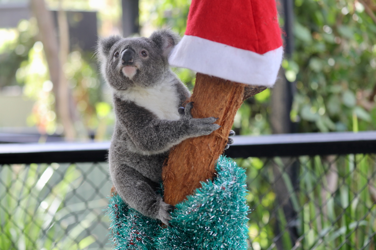 In footage released on Wednesday, some of the park's youngest residents, including a koala joey named Pipsqueak, were seen being given treats, surrounded by Christmas decorations.