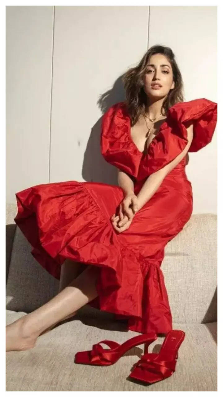Yami Gautam looked drop dead gorgeous in a crisp silk red dress.