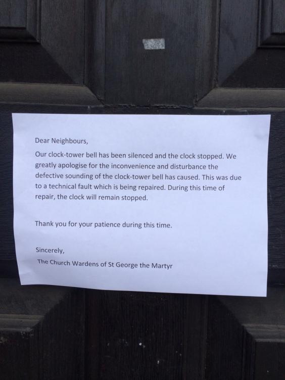 The church posted a notice outside its front door apologising for the noise.