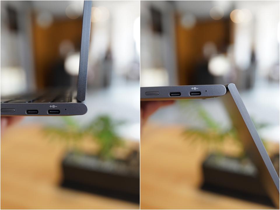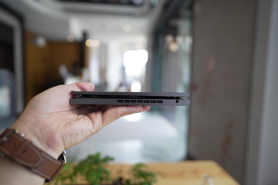 And just like the original Minibook, this is still a “convertible” laptop, meaning its screen can fold all the way backwards 360 degrees so the device can be used as a tablet—albeit a very thick one at 13mm. I suppose it’s about perspective: the 13mm in thickness and 1.9 lbs in weight may make for a thick and heavy tablet, it’s on the thin and light side for a laptop.