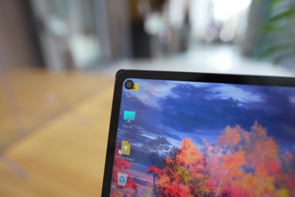 Let’s move back to that screen: it’s a 10.9-inch LCD panel with 2k resolution and it is a very good screen for an entry level laptop. It gets significantly brighter than most entry level devices from smaller brands, and it offers excellent viewing angles and color accuracy. The hole in the corner does distract from the UI at first, but like using the same tech on a smartphone, I got used to it after a couple of hours. The location of the touchscreen—upper left corner—is amusing, however, because by default, Windows always has an icon in that same spot.