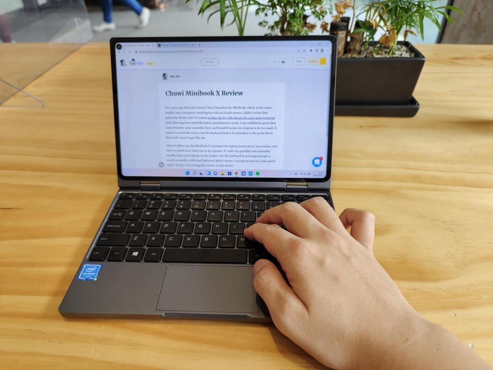 For me, I see definite value in the Minibook X as an on-the-go work machine—this smaller form factor would fit much better on an airplane tray table or a small coffee shop bar table. But I will almost certainly never use this as a tablet again beyond initial testing.